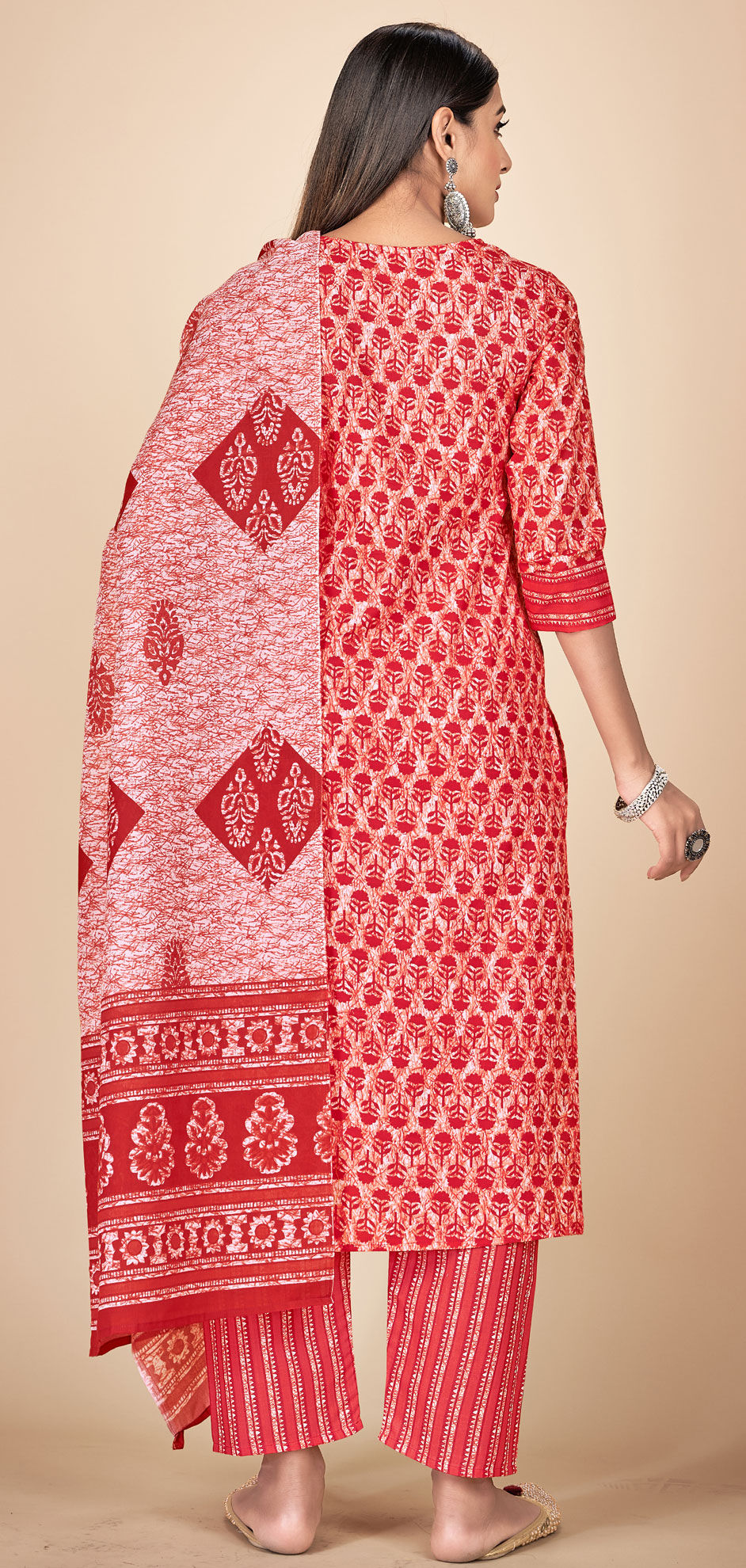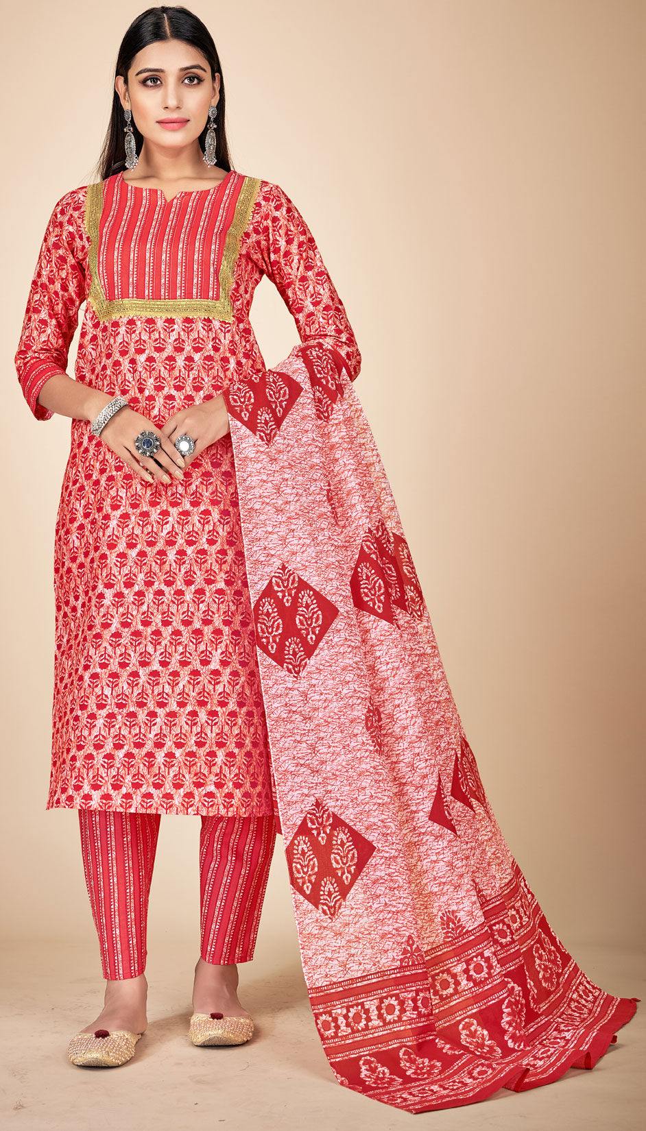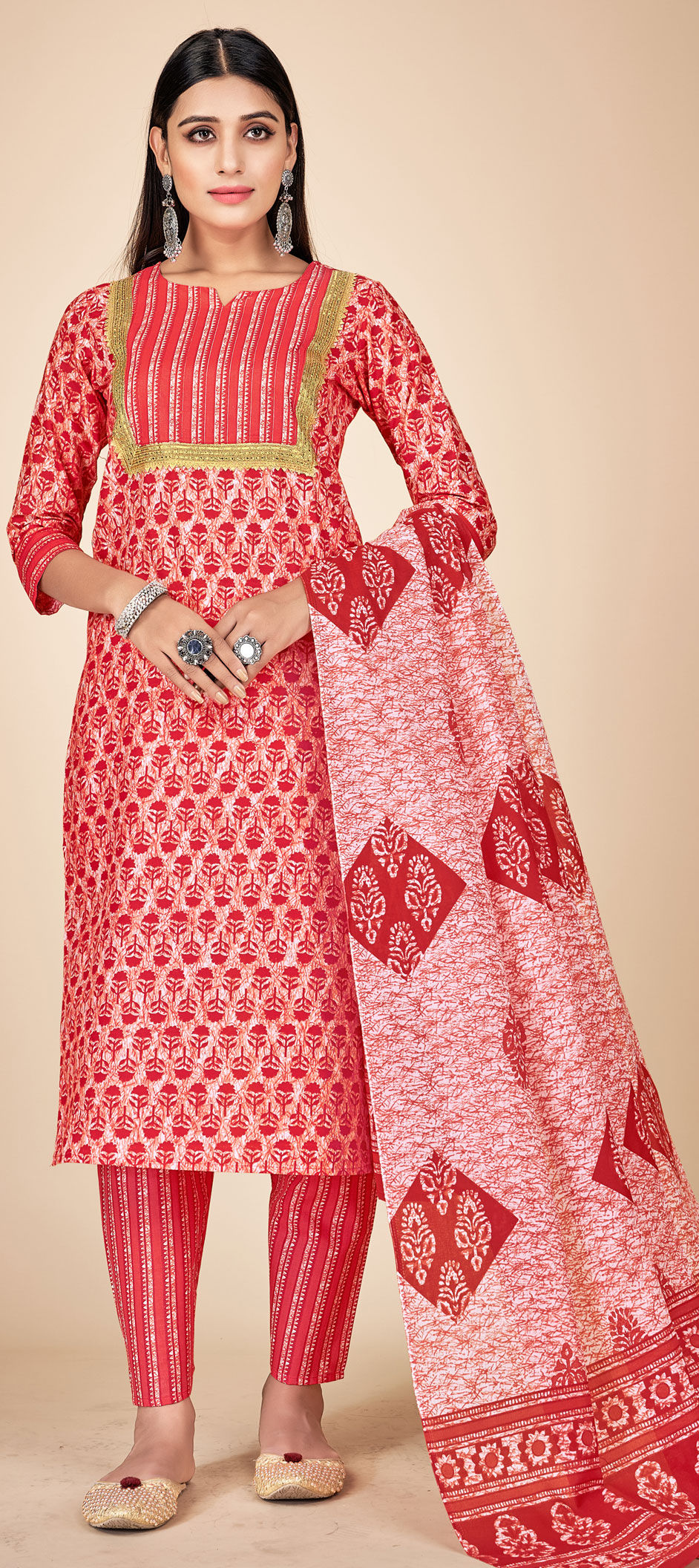 Red and Maroon color Salwar Kameez in Rayon fabric with Printed work