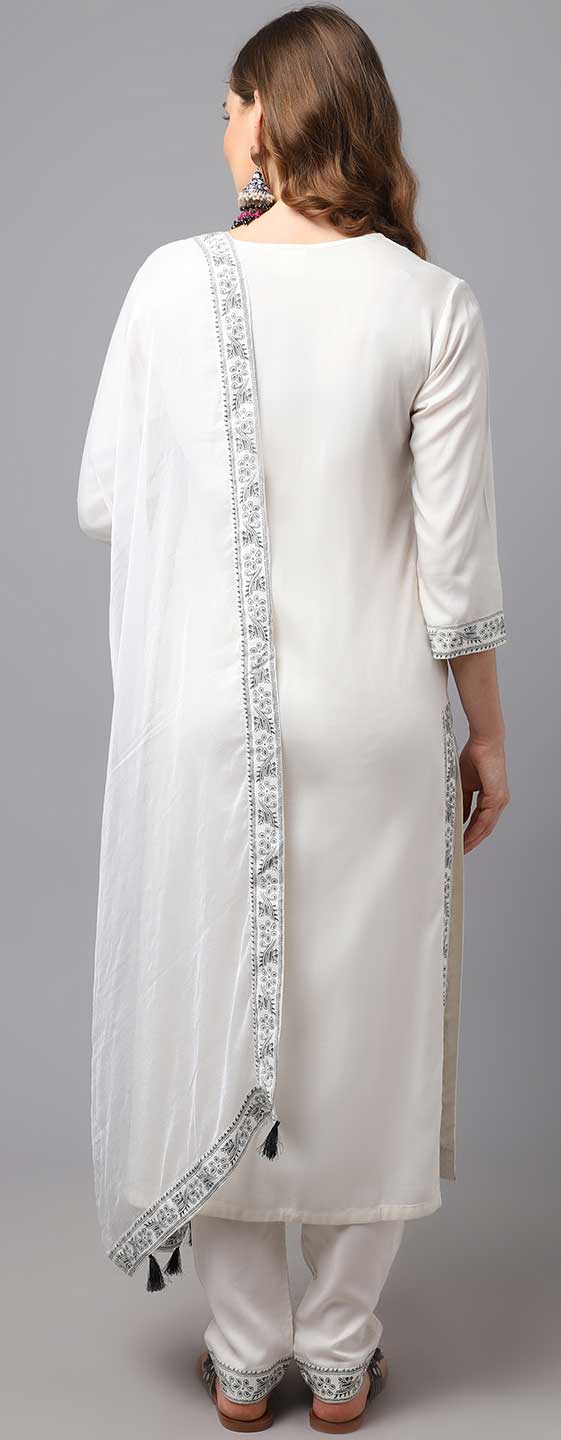 White and Off White color Salwar Kameez in Rayon fabric with Embroidered, Printed, Sequence work