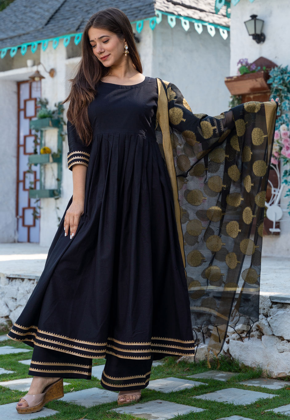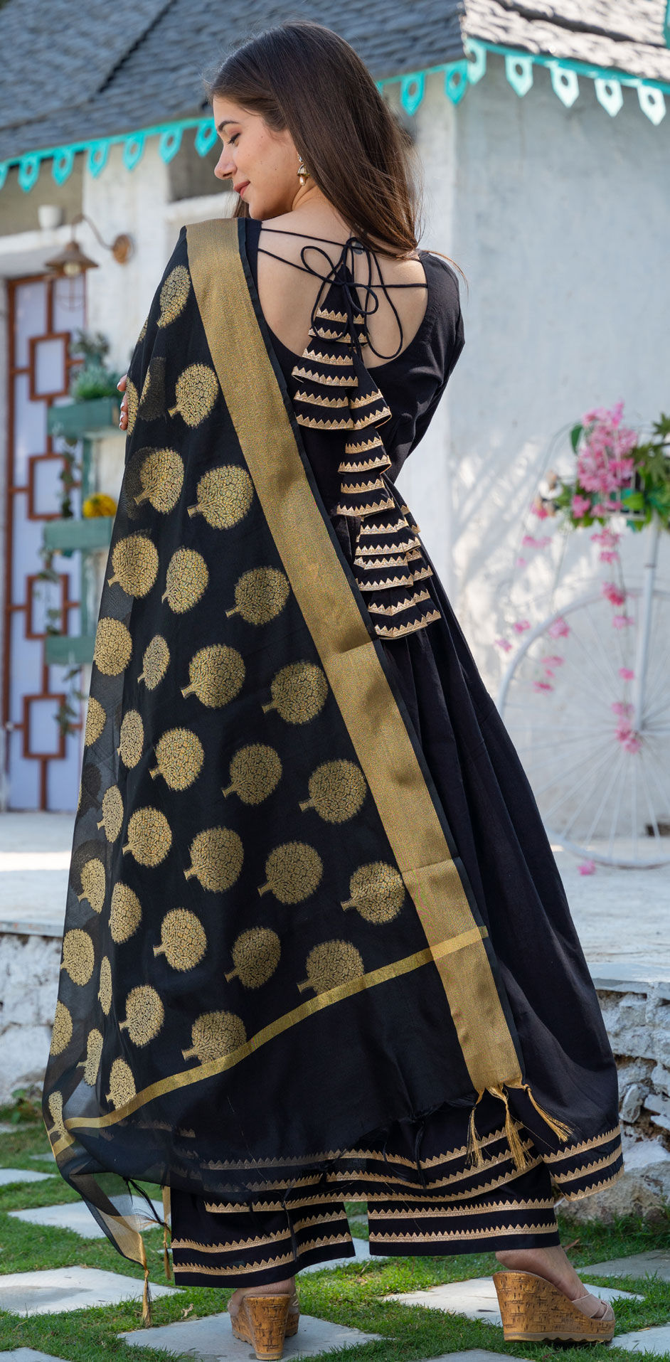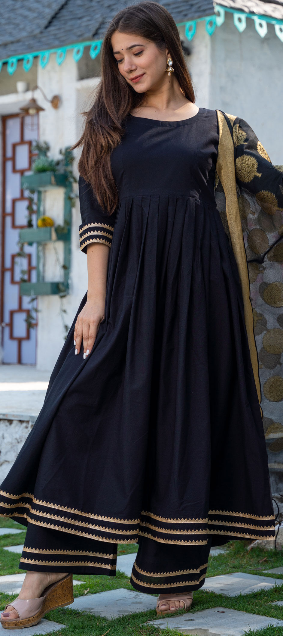 Black and Grey color Salwar Kameez in Rayon fabric with Gota Patti work