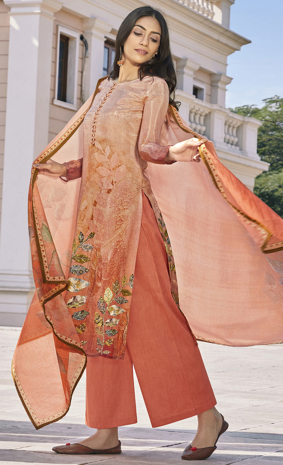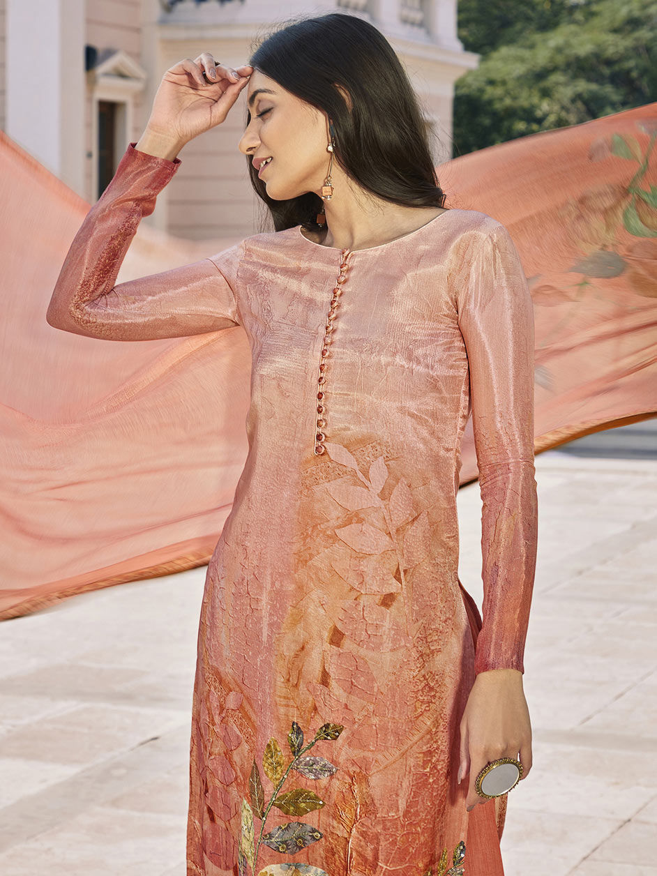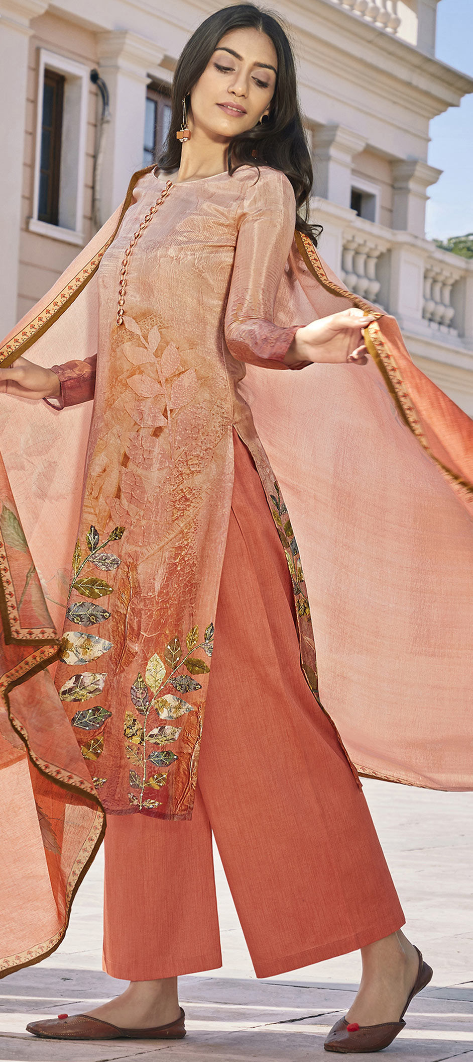 Pink and Majenta color Salwar Kameez in Satin Silk fabric with Digital Print, Floral, Sequence, Zari work