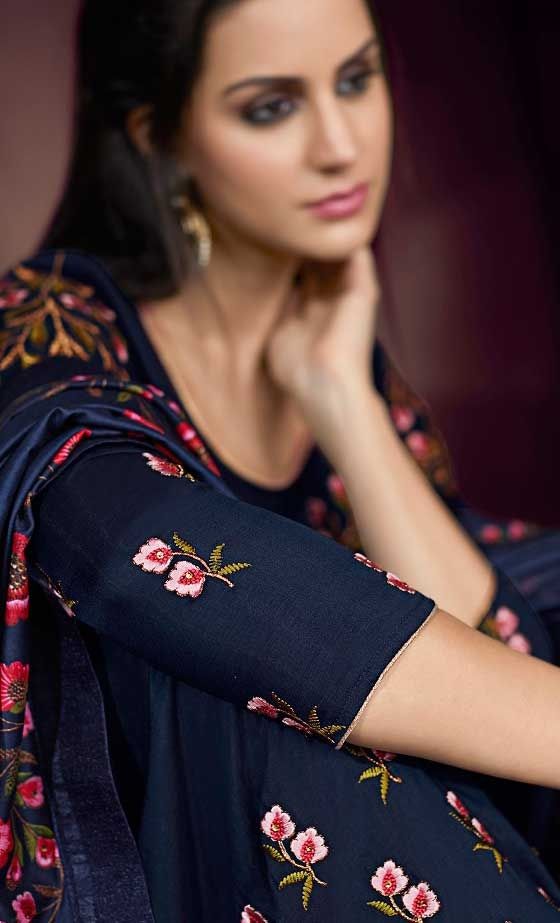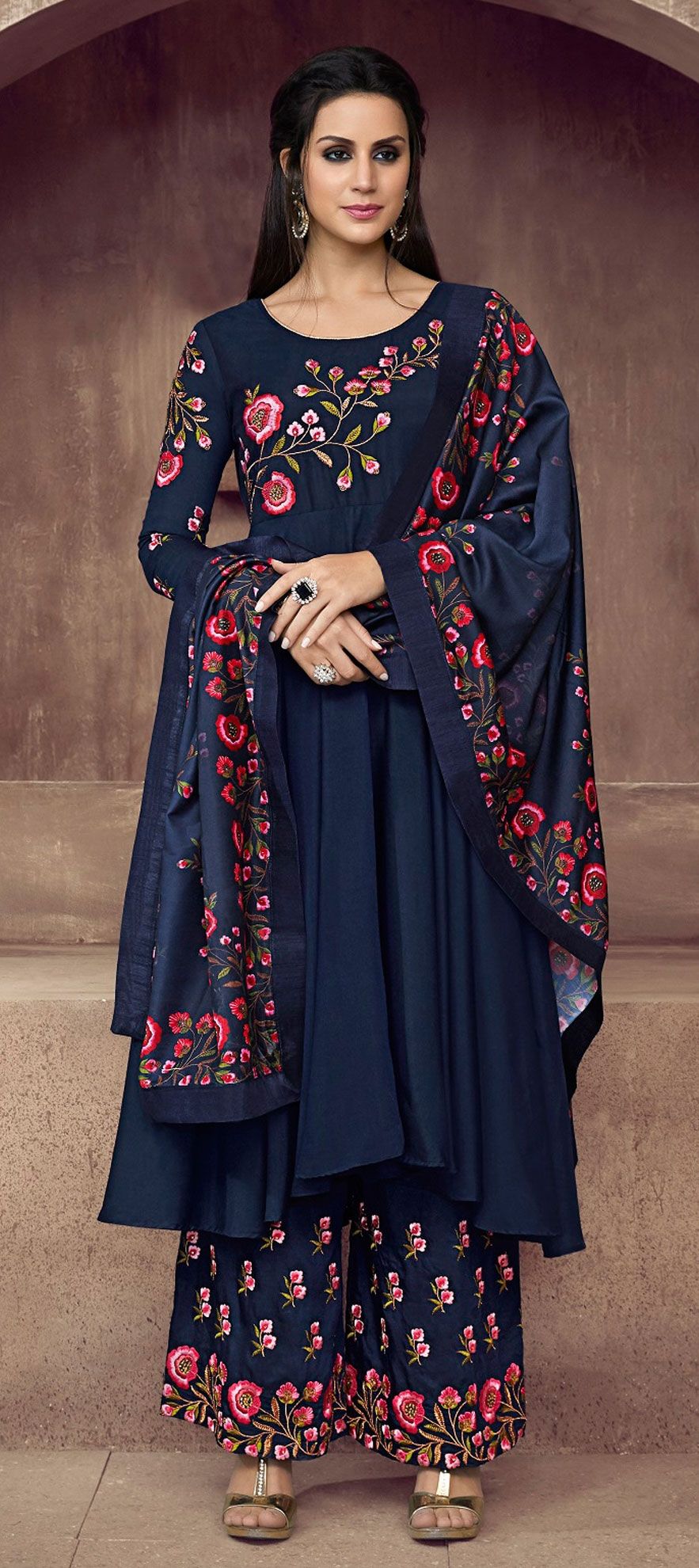 Blue color Salwar Kameez in Silk cotton fabric with Embroidered, Zari work