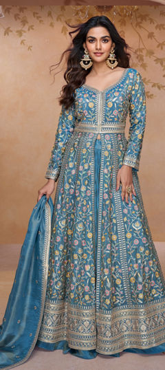 Blue color Salwar Kameez in Silk fabric with Embroidered, Mirror work