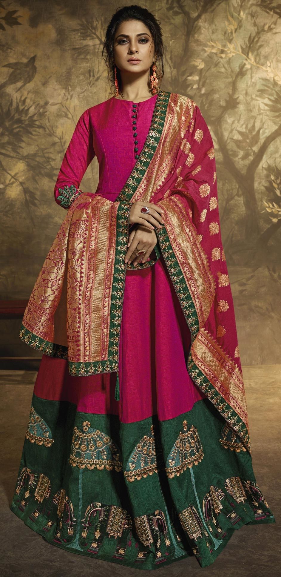 in Pink and Majenta with Stone work