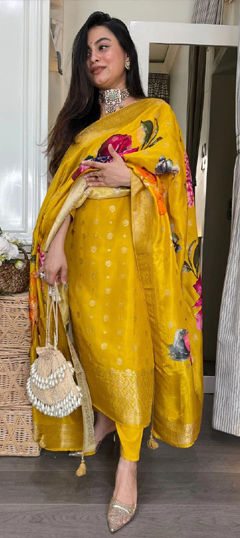 Yellow color Salwar Kameez in Viscose fabric with Embroidered, Sequence, Thread work