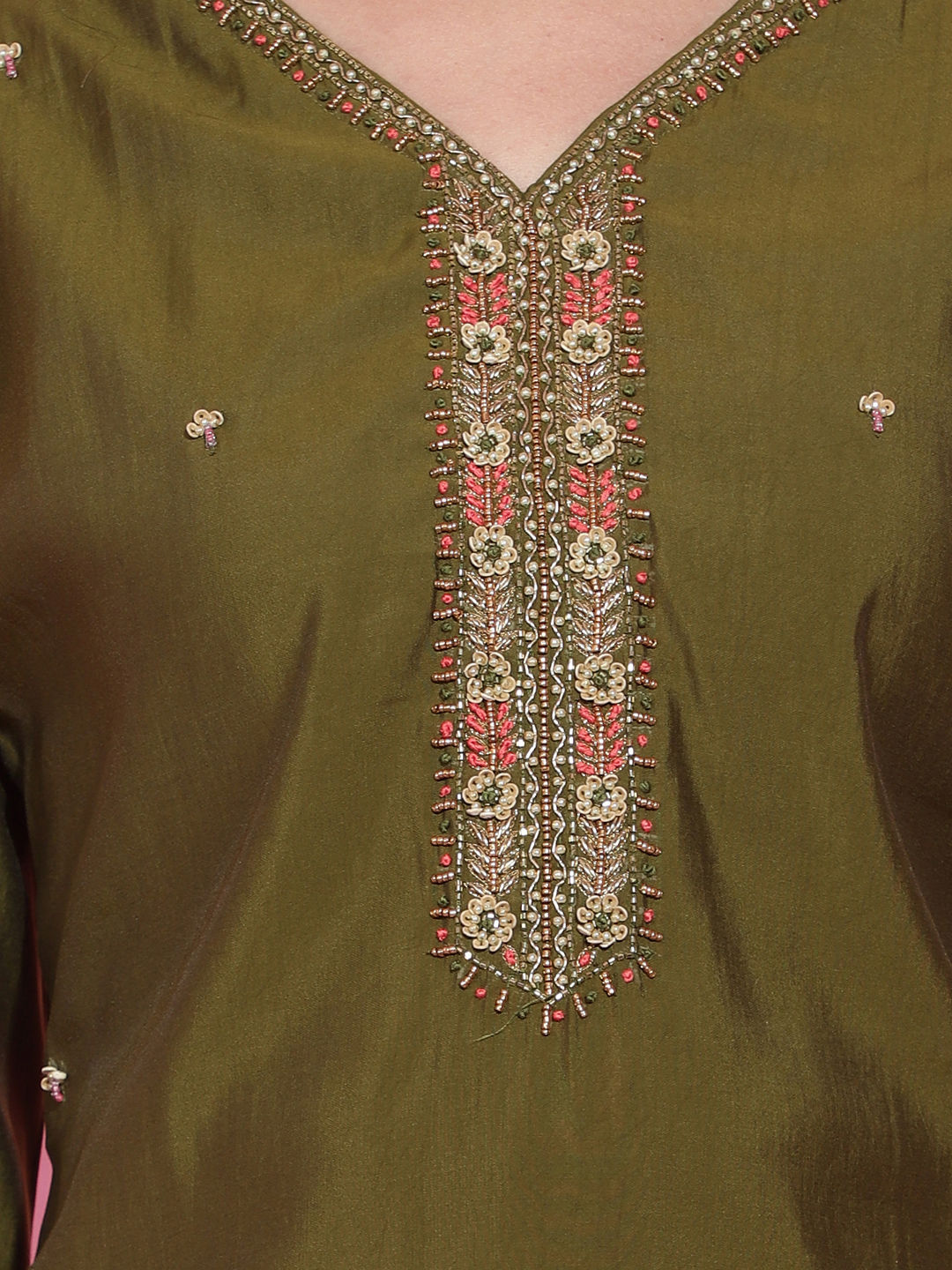 Silk cotton Party Wear Salwar Kameez in Green with Block Print work