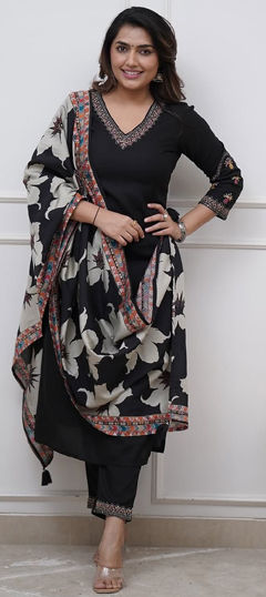 Black and Grey color Salwar Kameez in Viscose fabric with Embroidered, Printed work