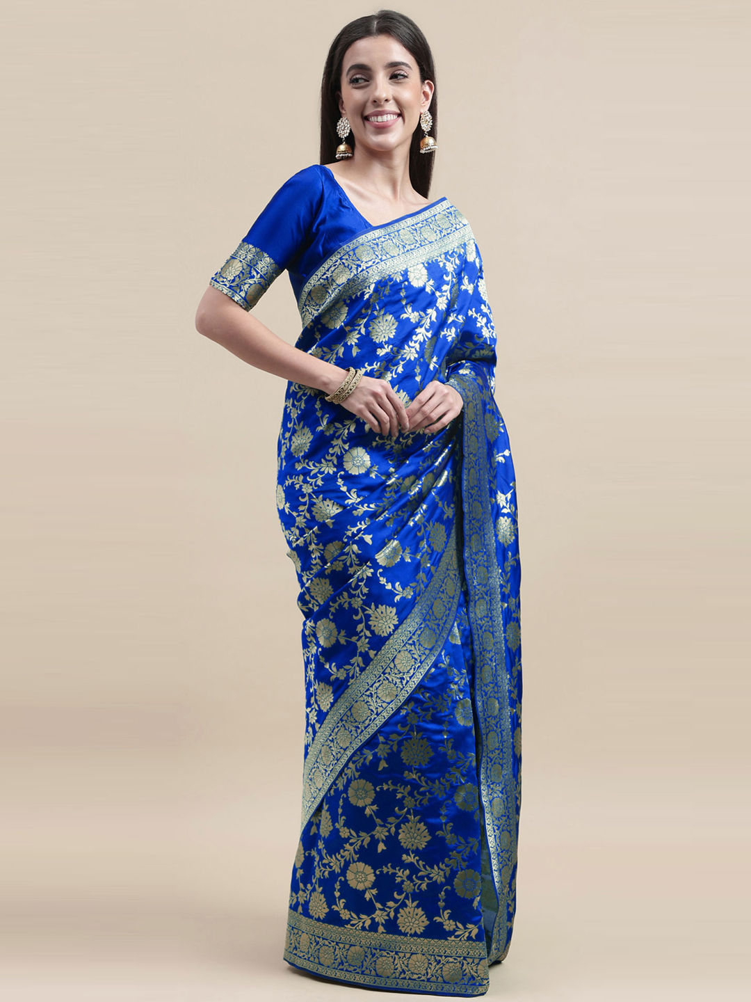 Blue color Saree in Art Silk, Silk fabric with Weaving work