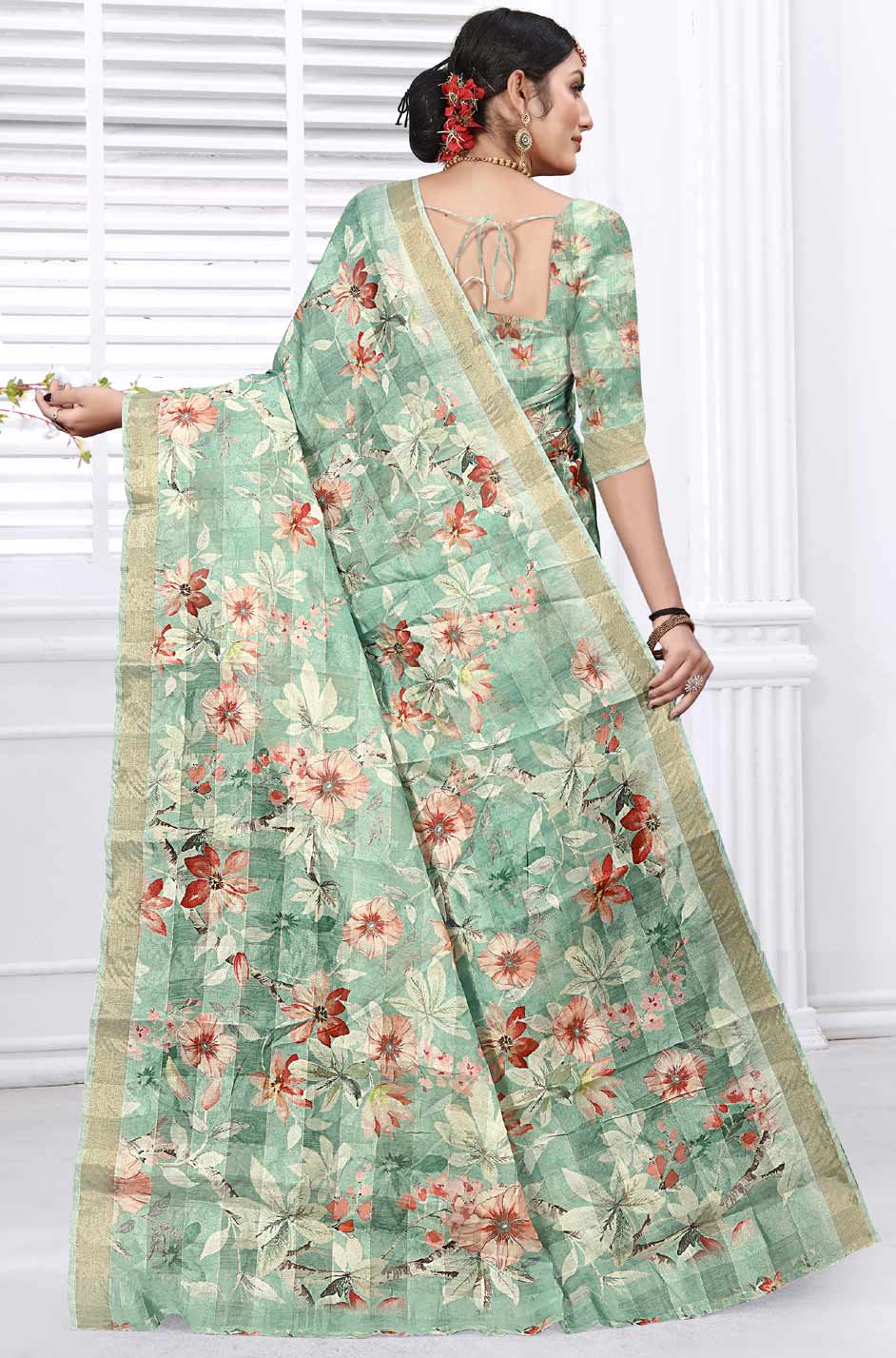 Green color Saree in Art Silk, Silk fabric with Digital Print, Floral, Weaving work