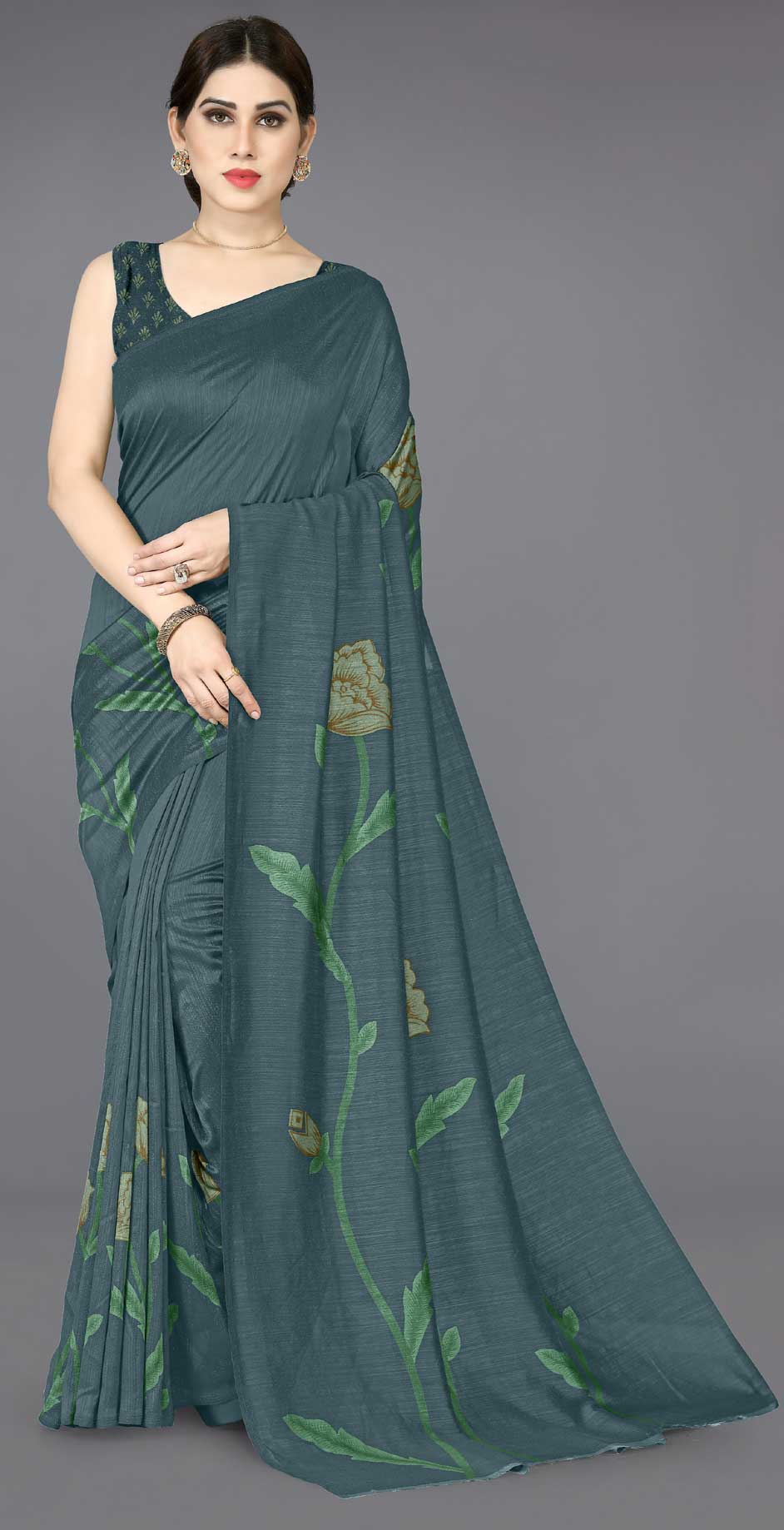 in Green with Floral work