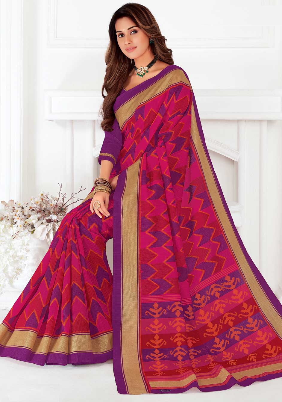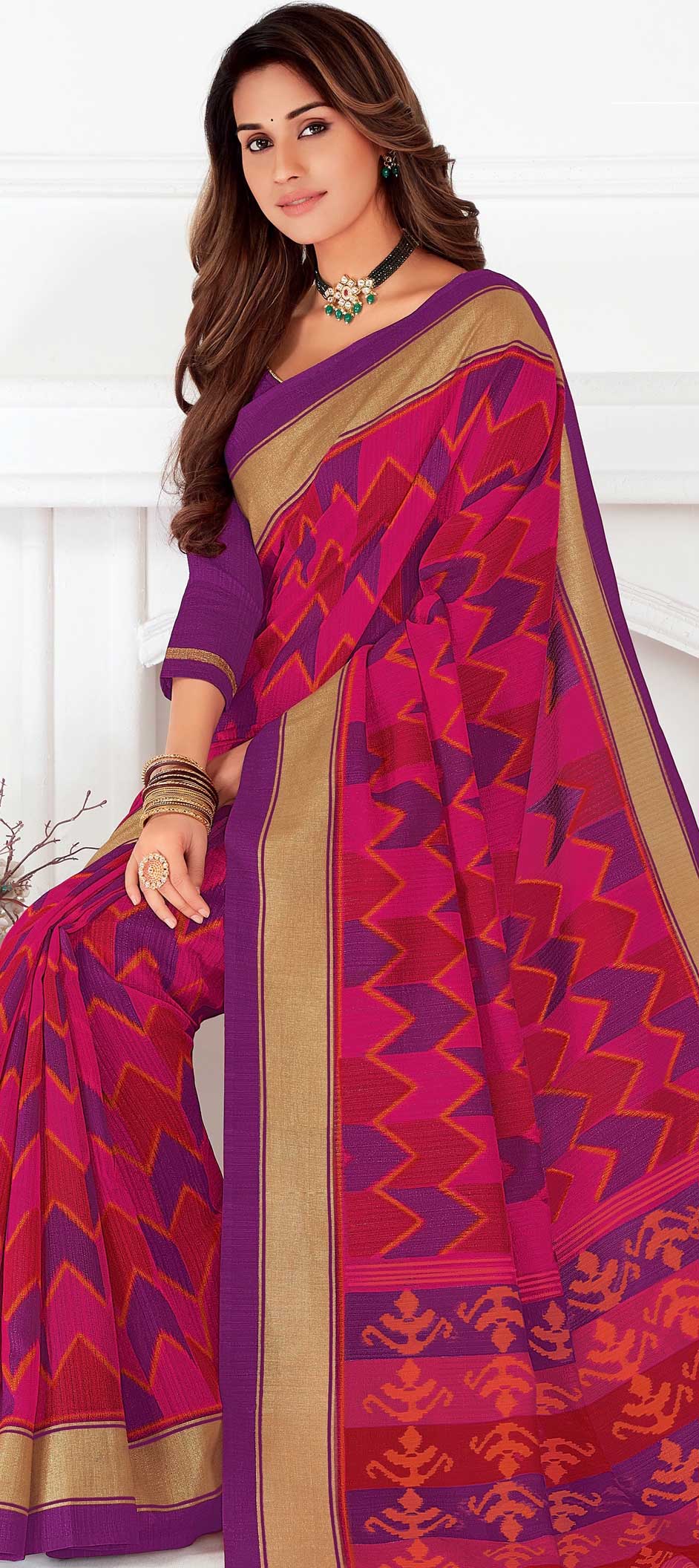 Pink and Majenta color Saree in Art Silk, Silk fabric with Foil Print work