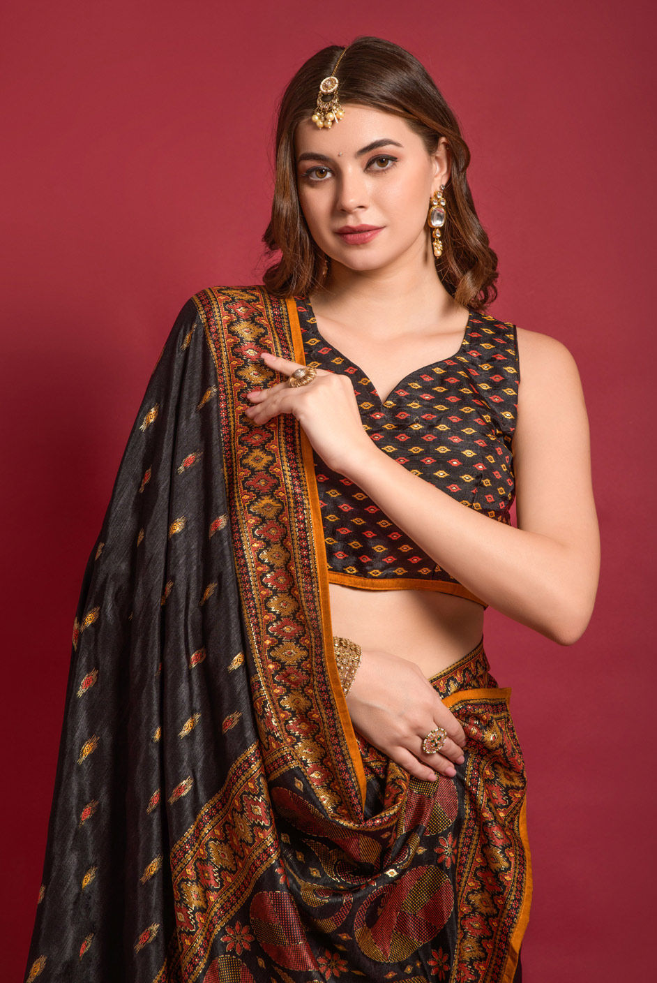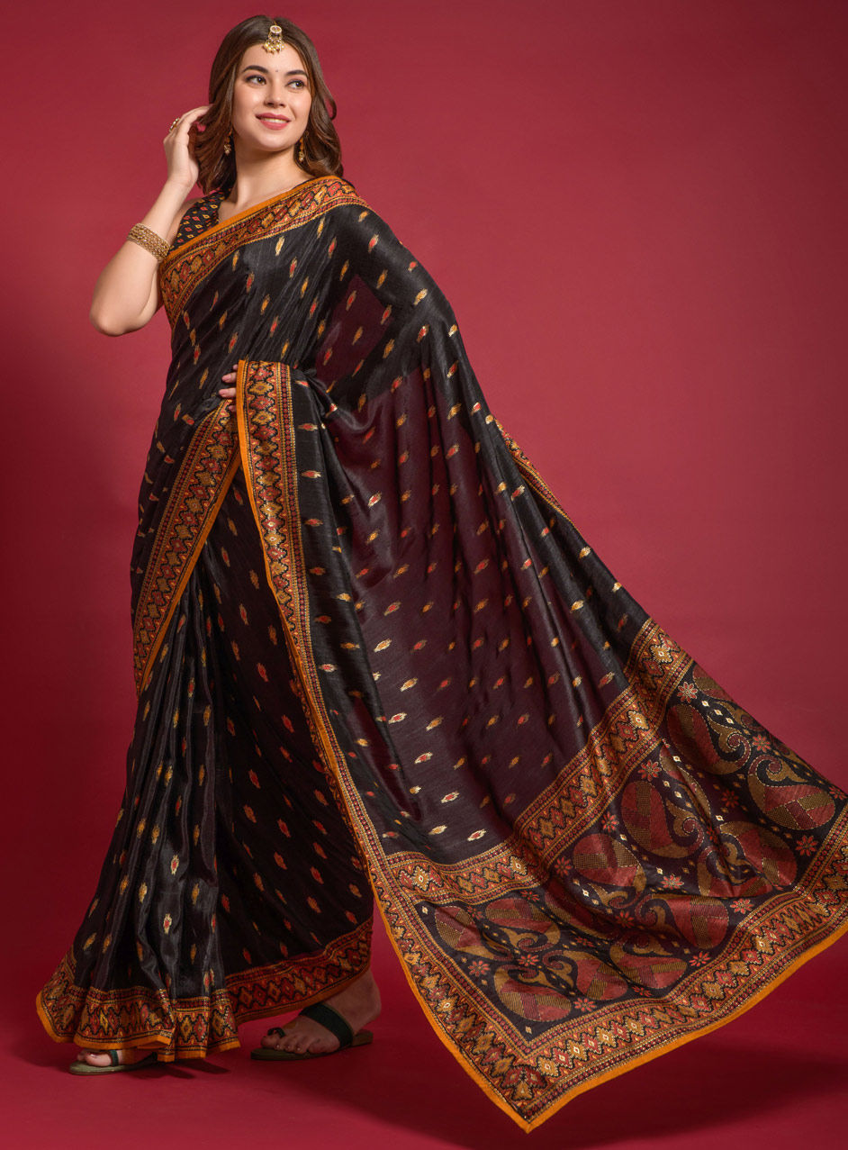 Black and Grey color Saree in Art Silk, Silk fabric with Foil Print work
