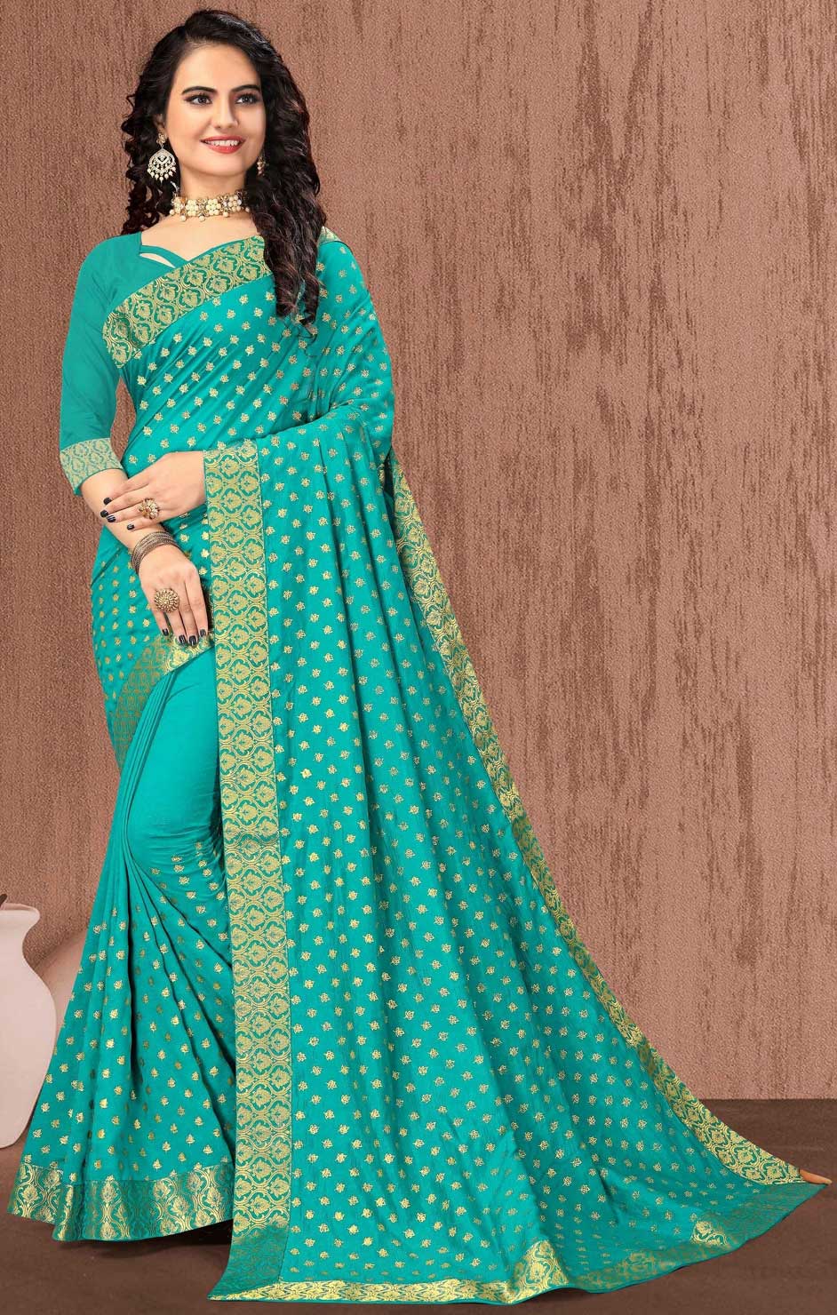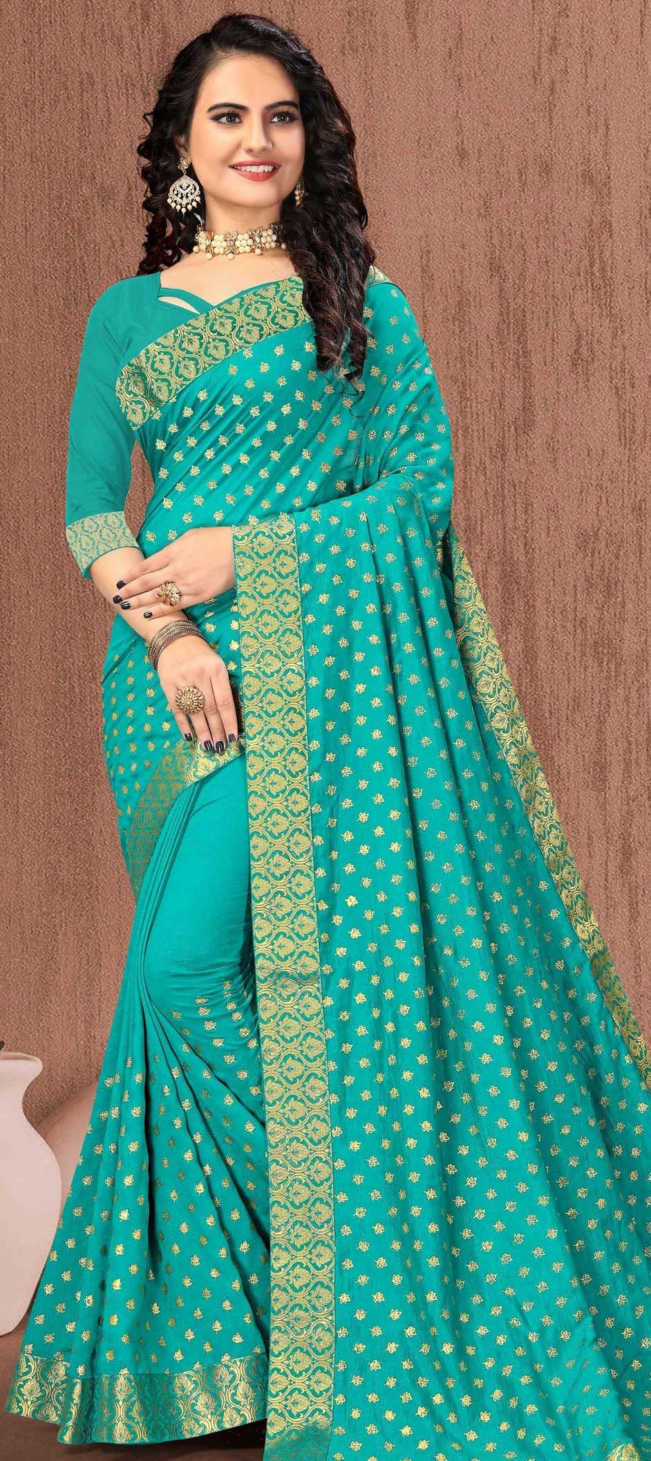 Blue color Saree in Art Silk fabric with Foil Print, Lace work