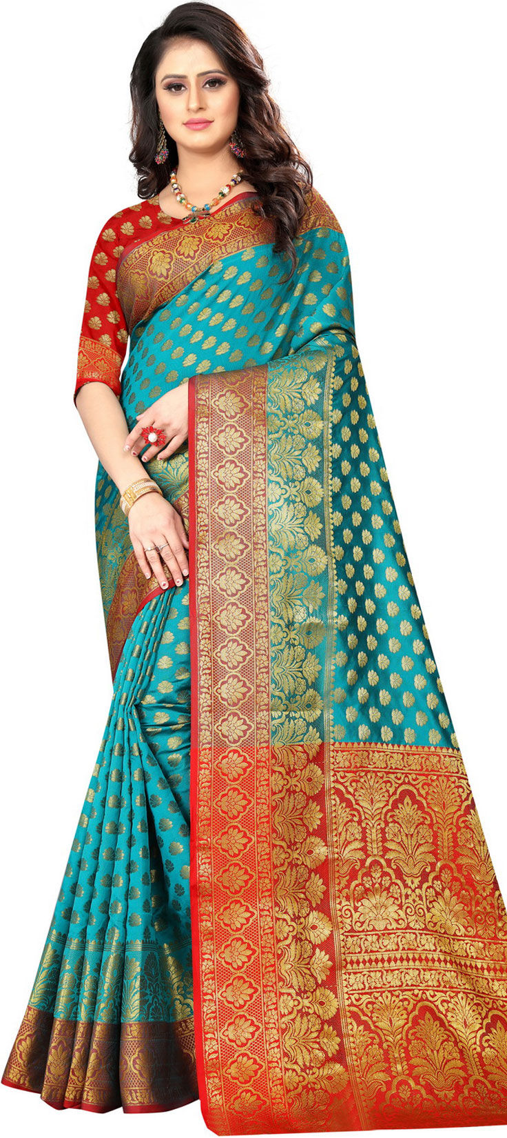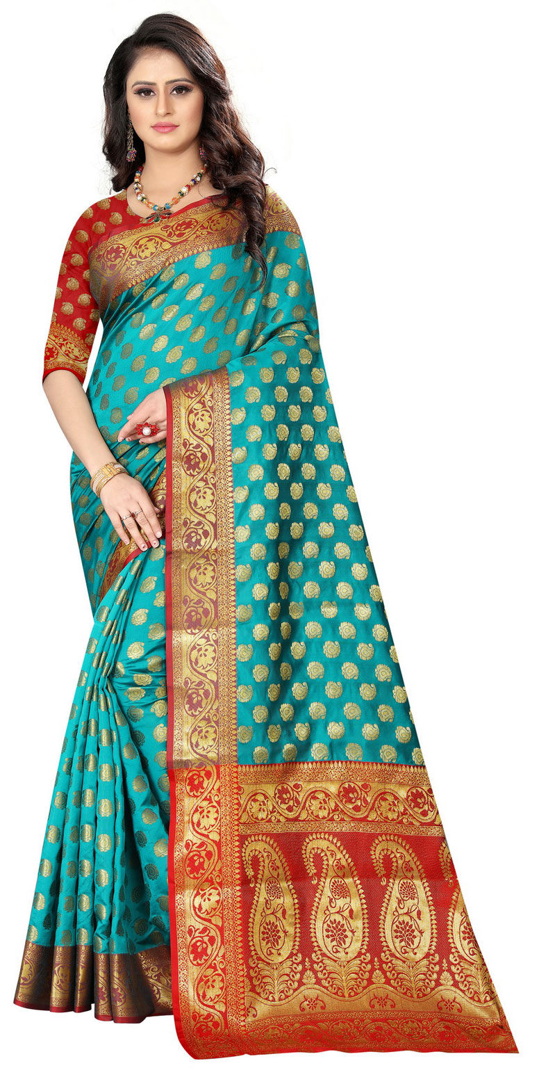 Blue color Saree in Art Silk, Silk fabric with Weaving work