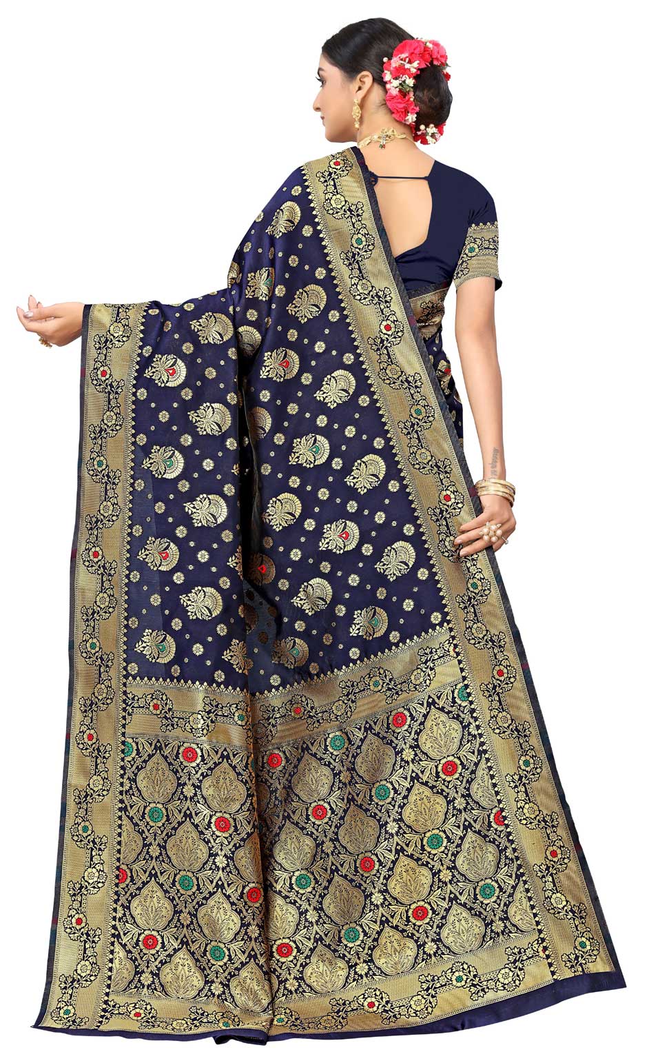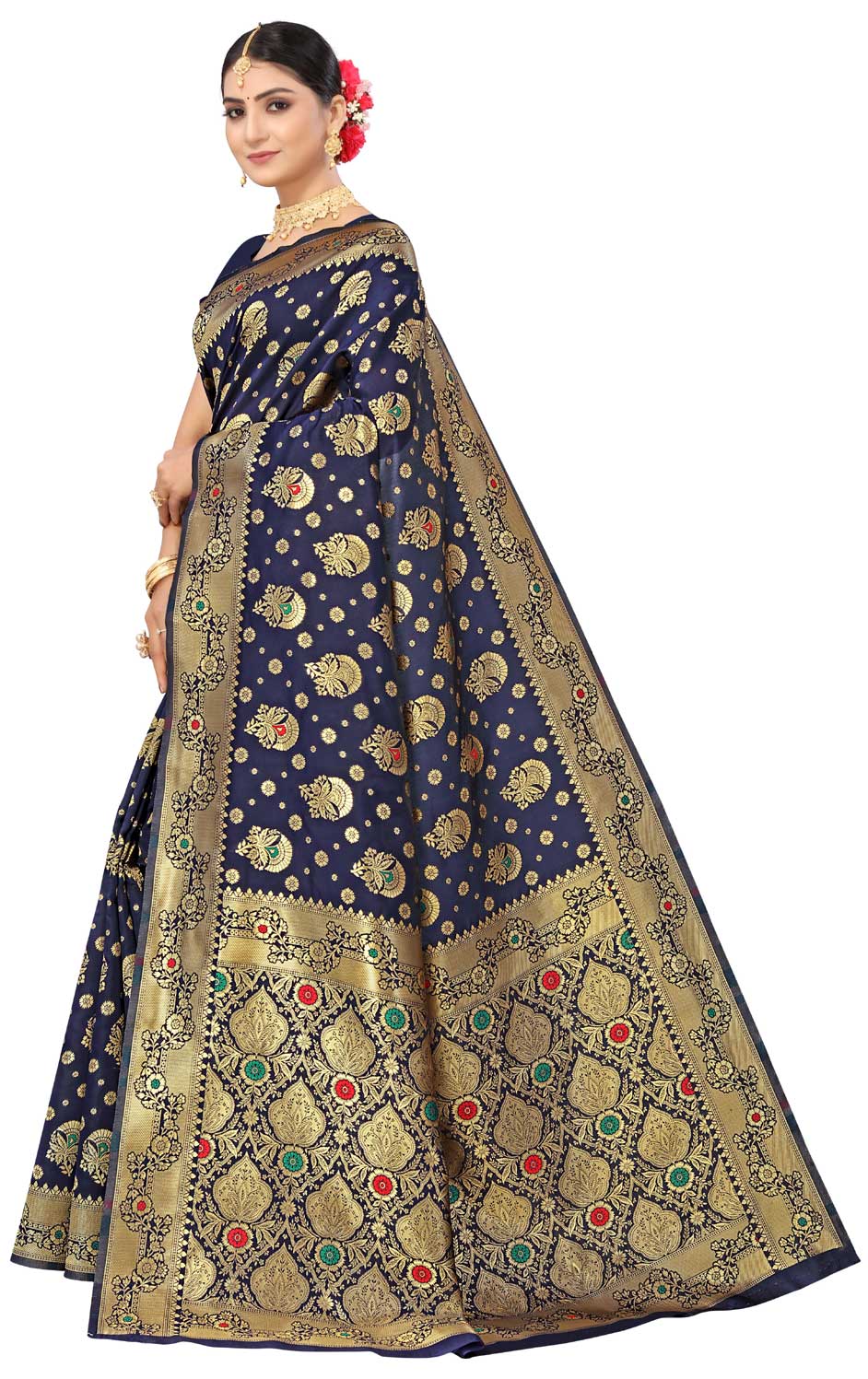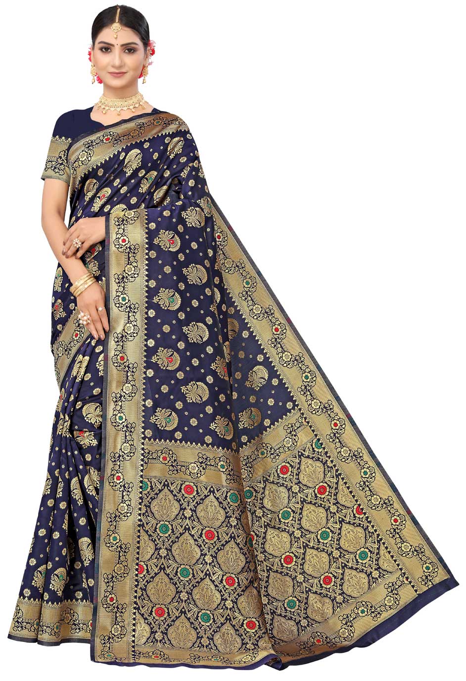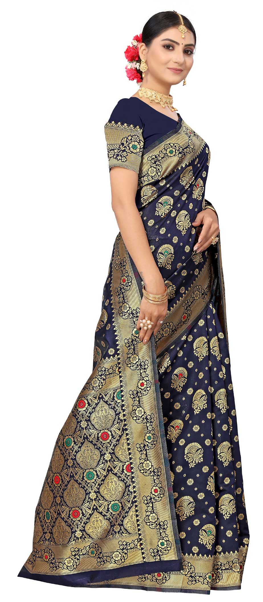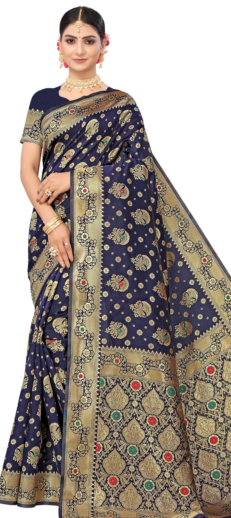 Blue color Saree in Art Silk, Silk fabric with Weaving work