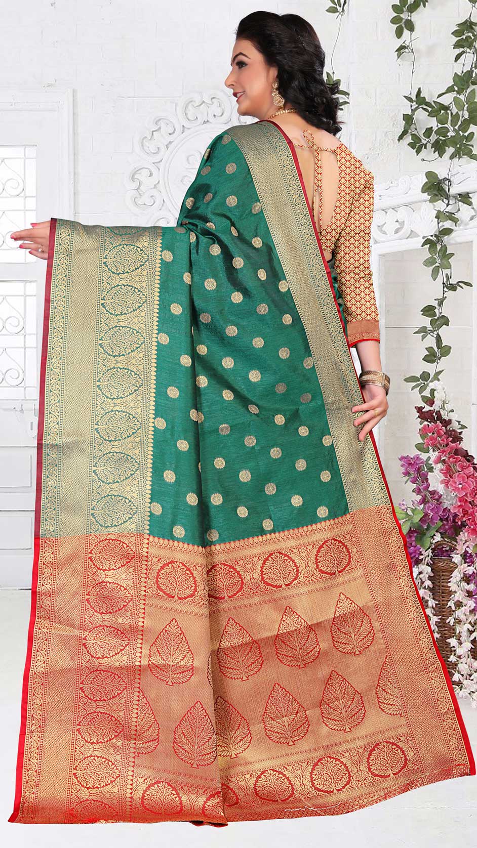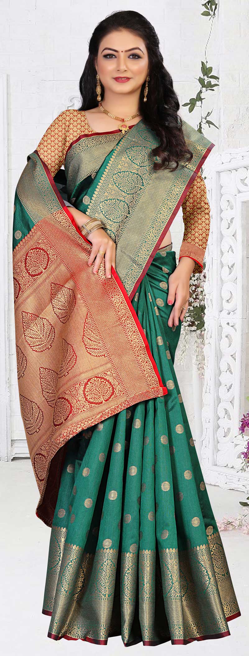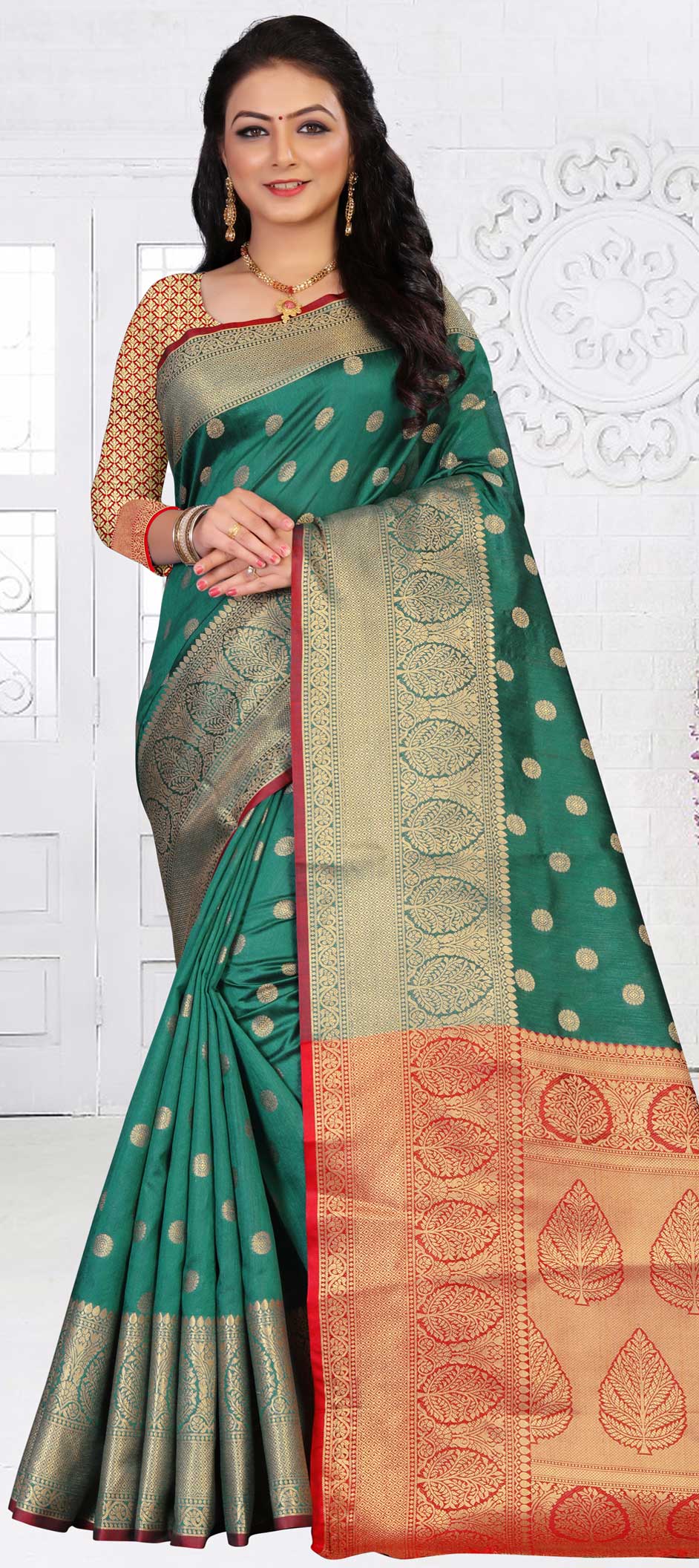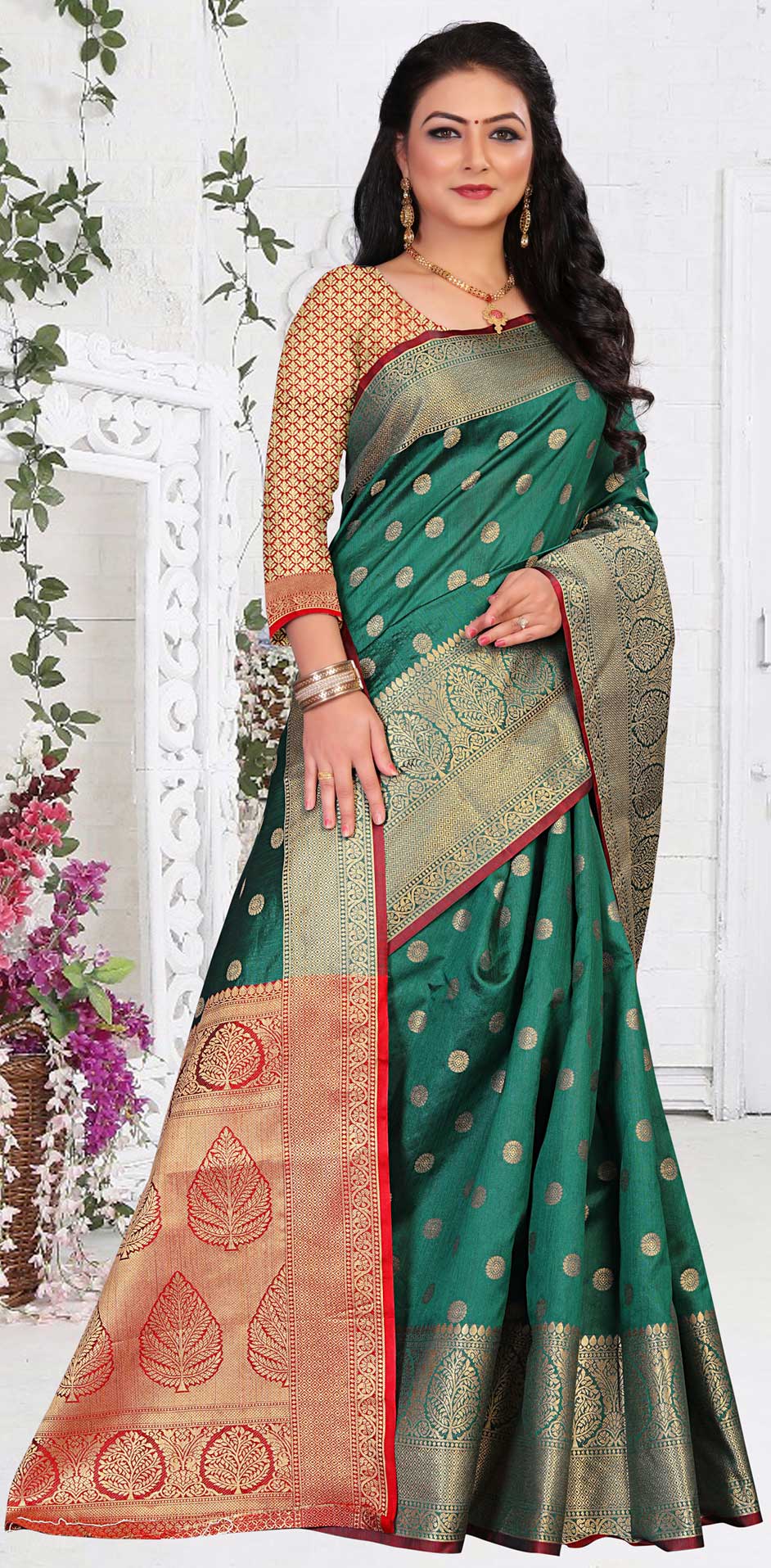 Green color Saree in Art Silk, Silk fabric with Weaving work