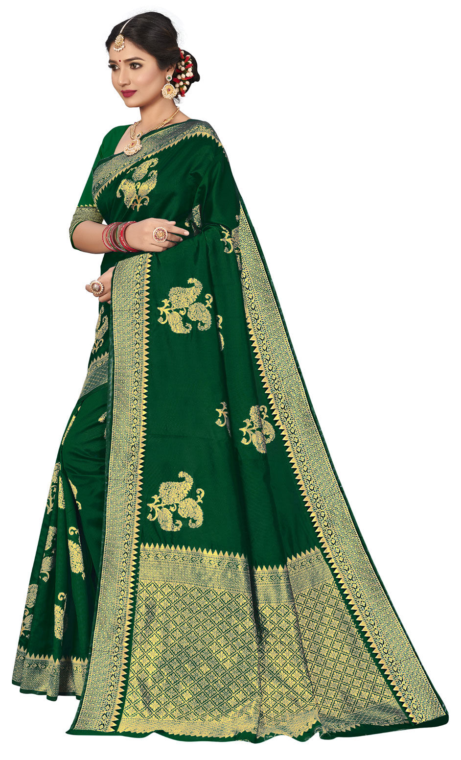 Green color Saree in Art Silk fabric with Weaving work