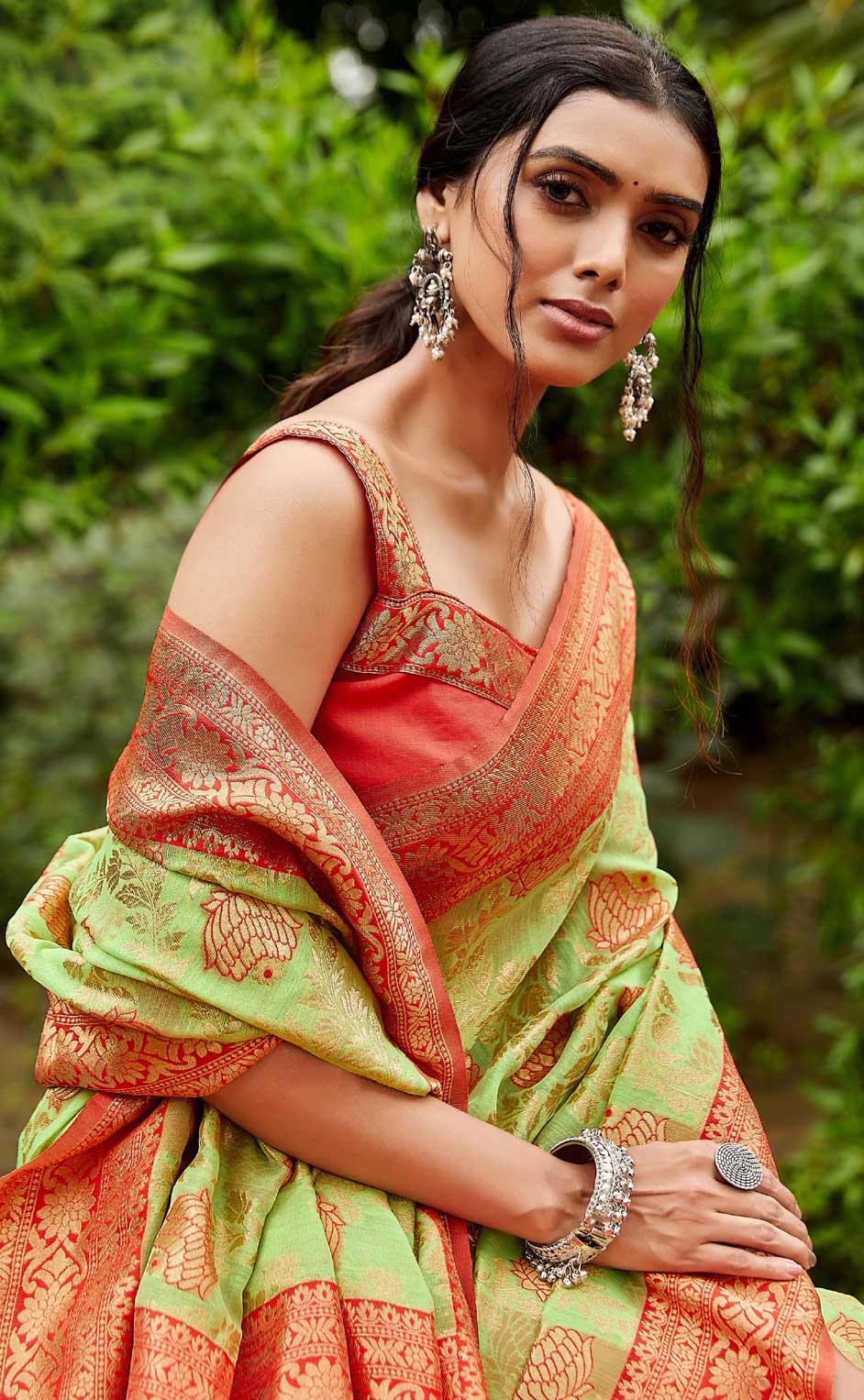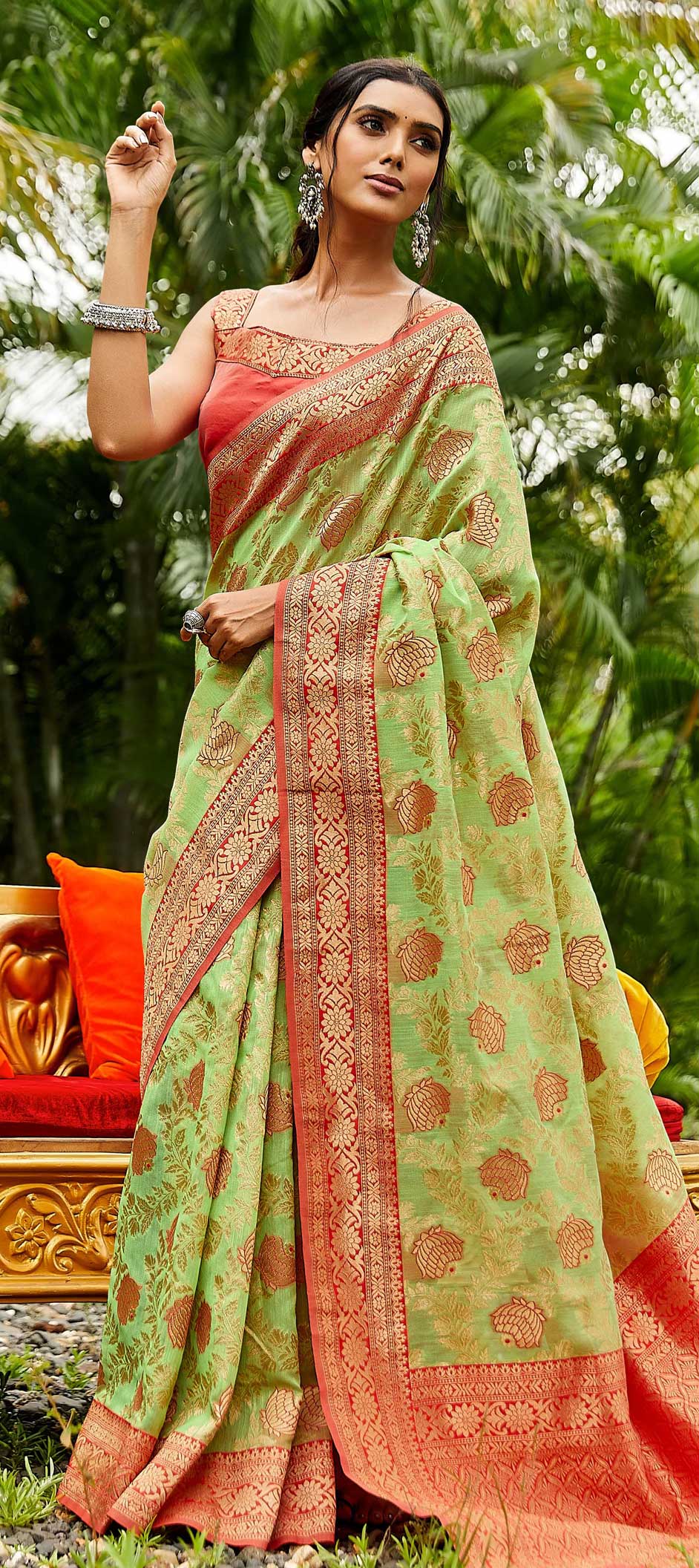 Green color Saree in Art Silk, Silk fabric with Weaving work