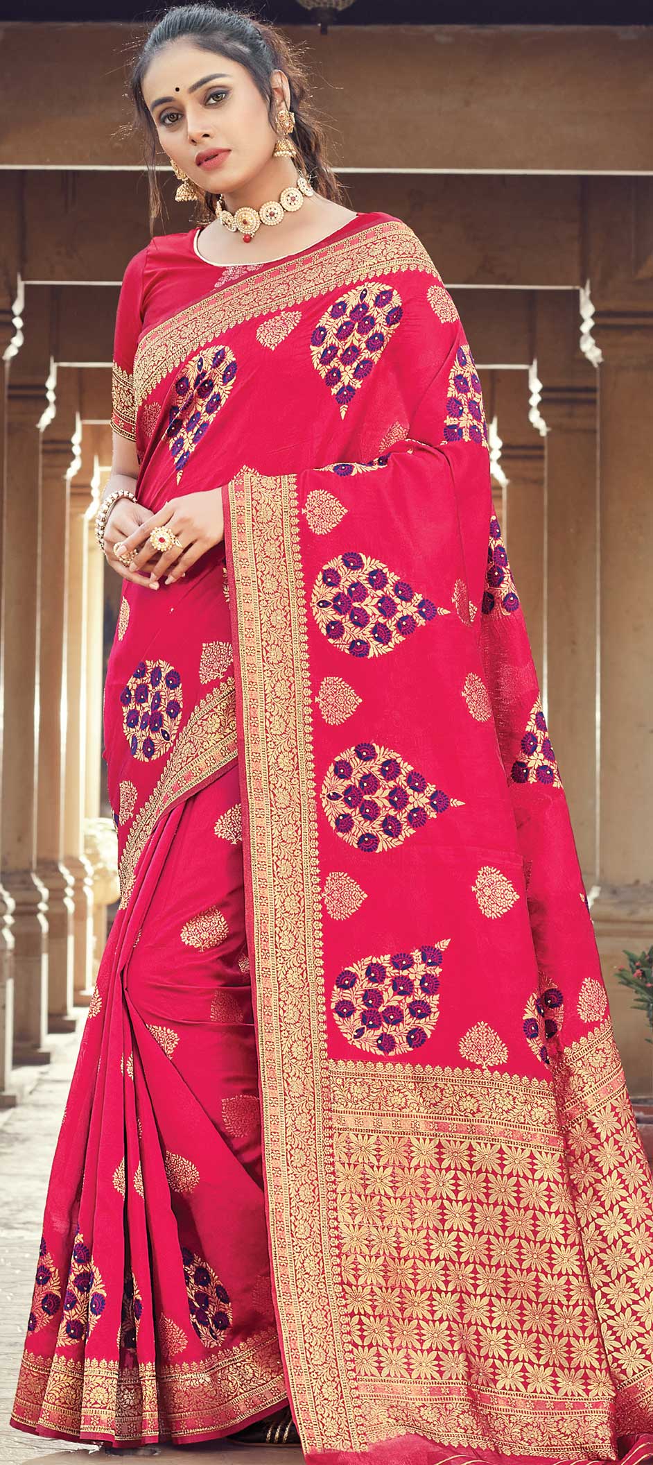 Pink and Majenta color Saree in Art Silk, Silk fabric with Weaving work