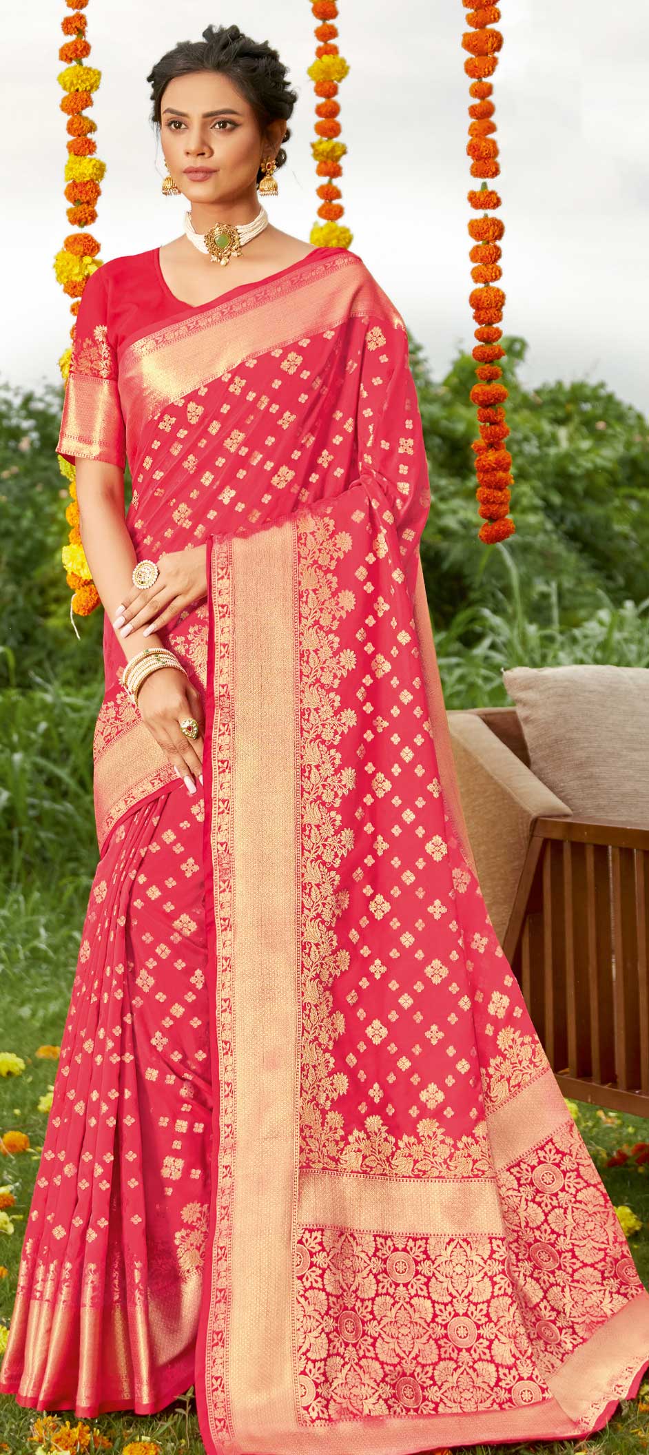 in Pink and Majenta with Weaving work