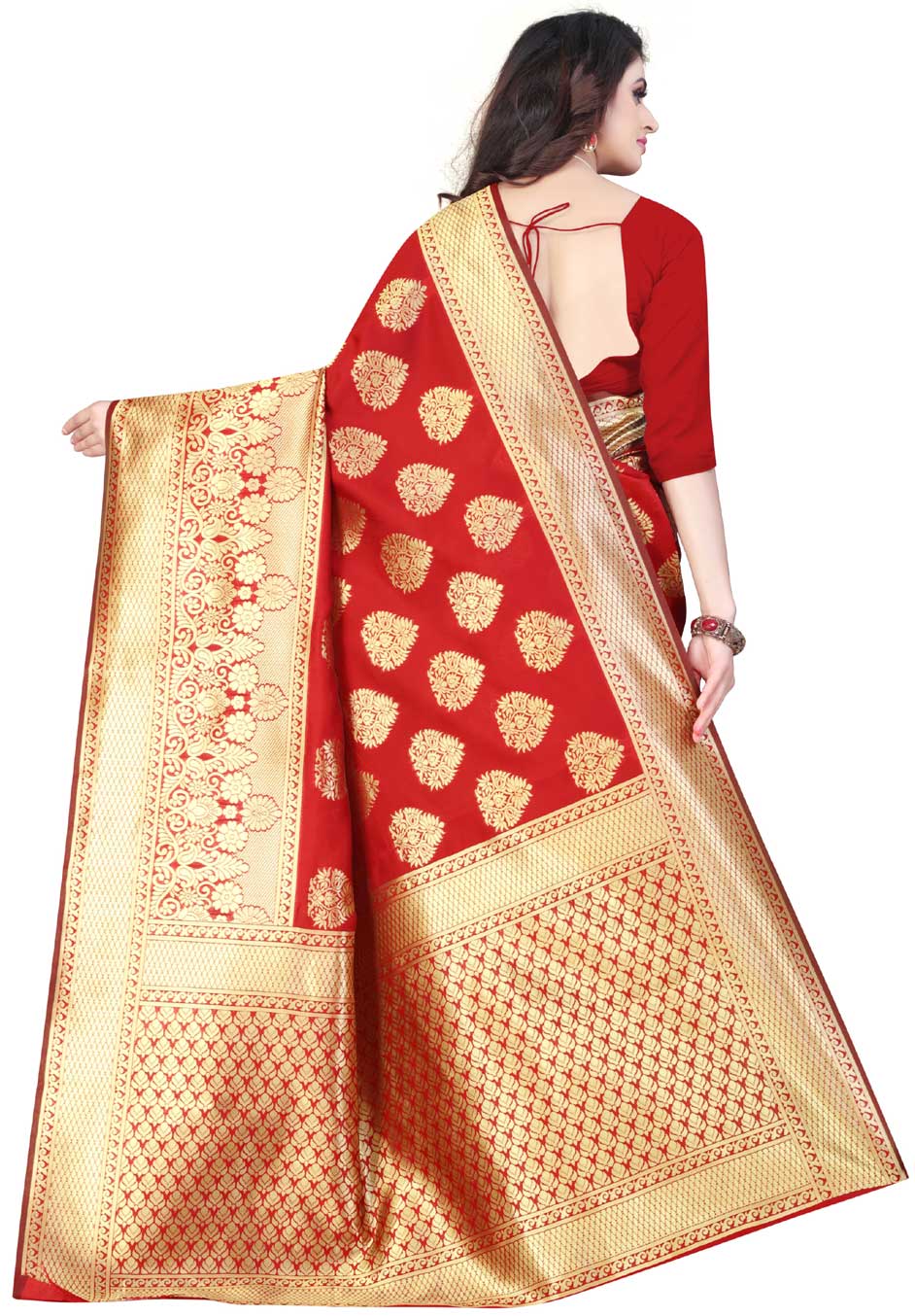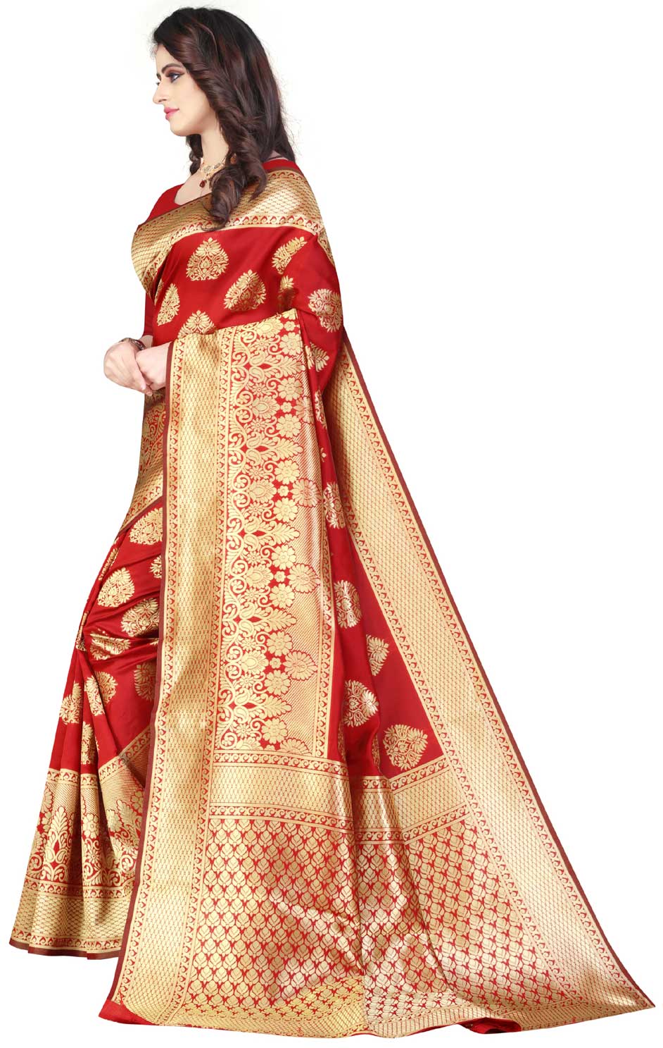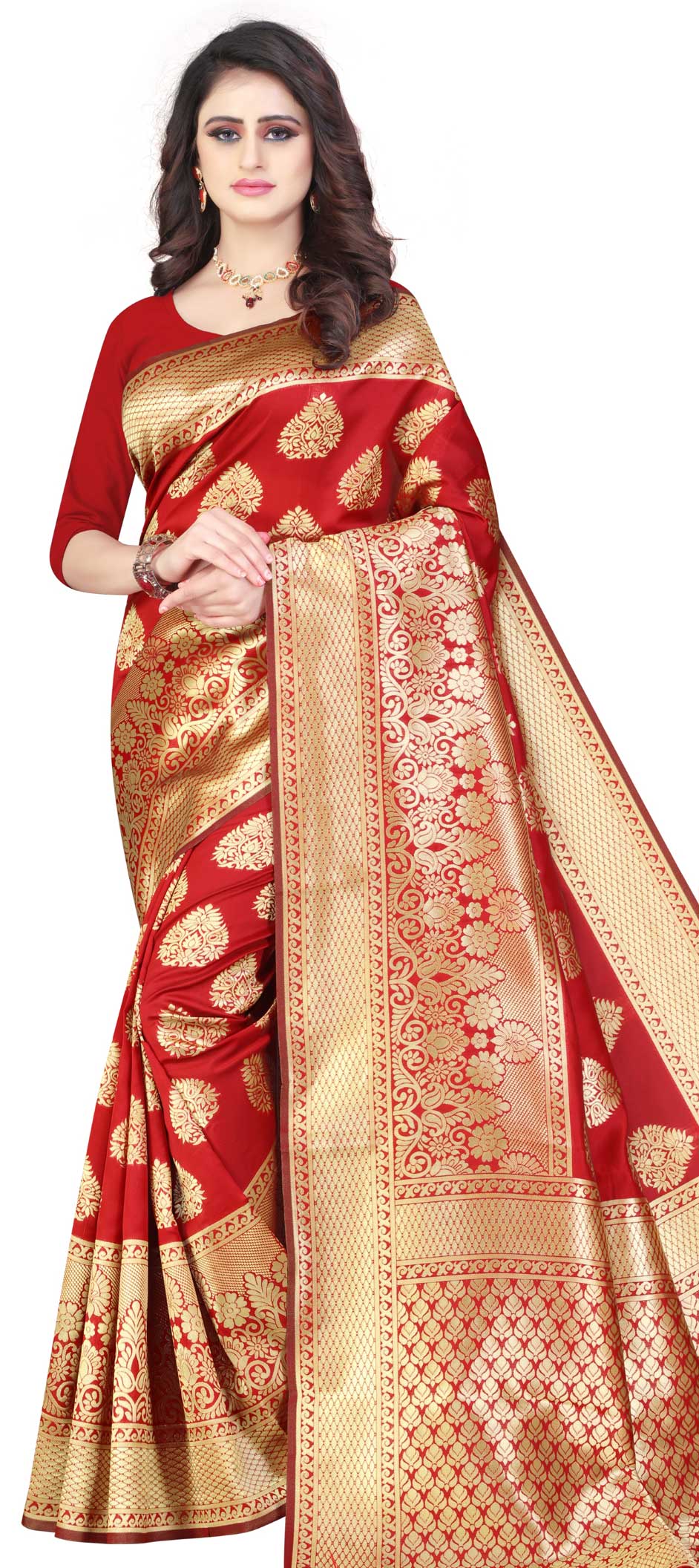 Red and Maroon color Saree in Art Silk, Silk fabric with Weaving work