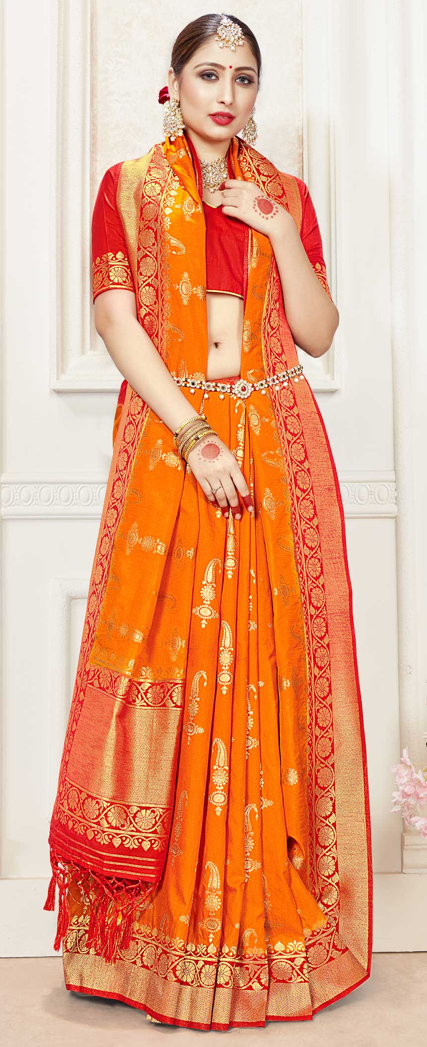 in Orange with Weaving work