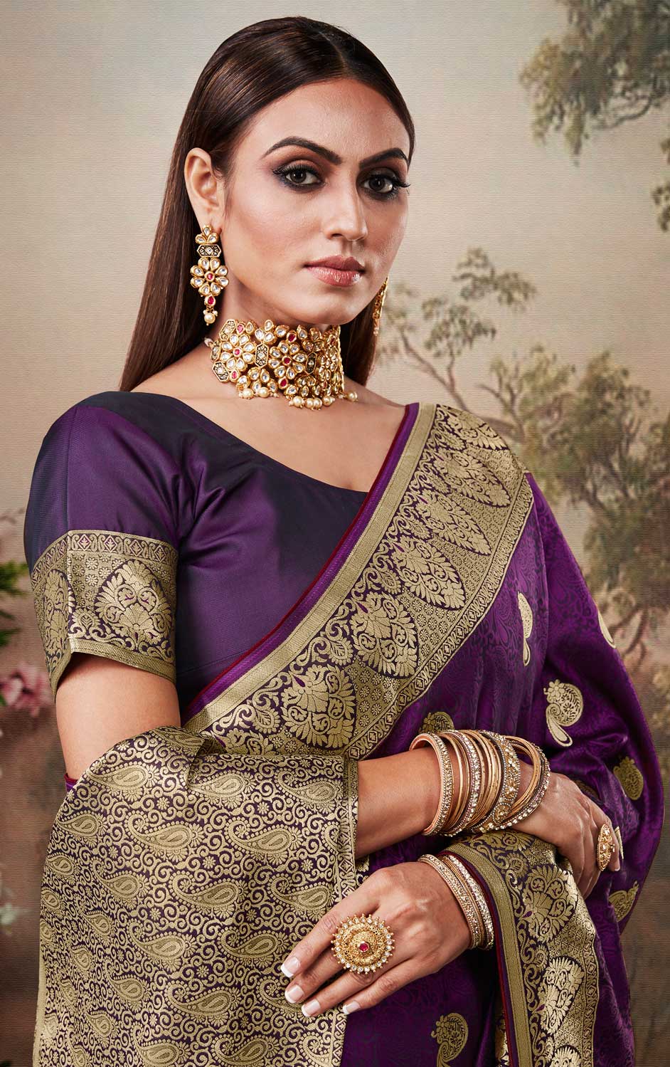 in Purple and Violet with Weaving work