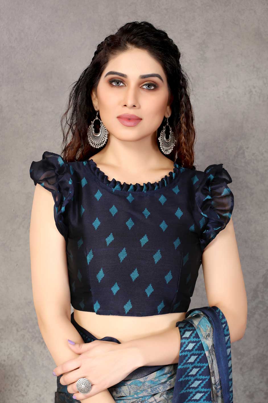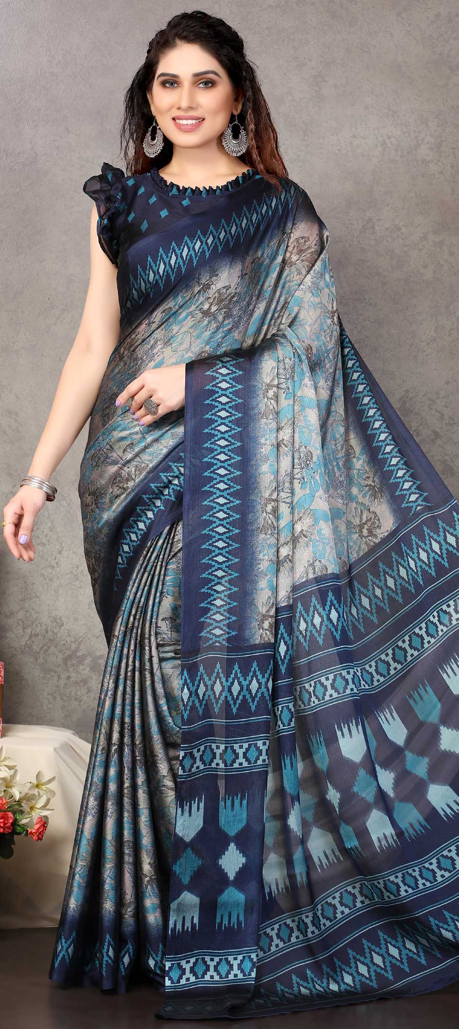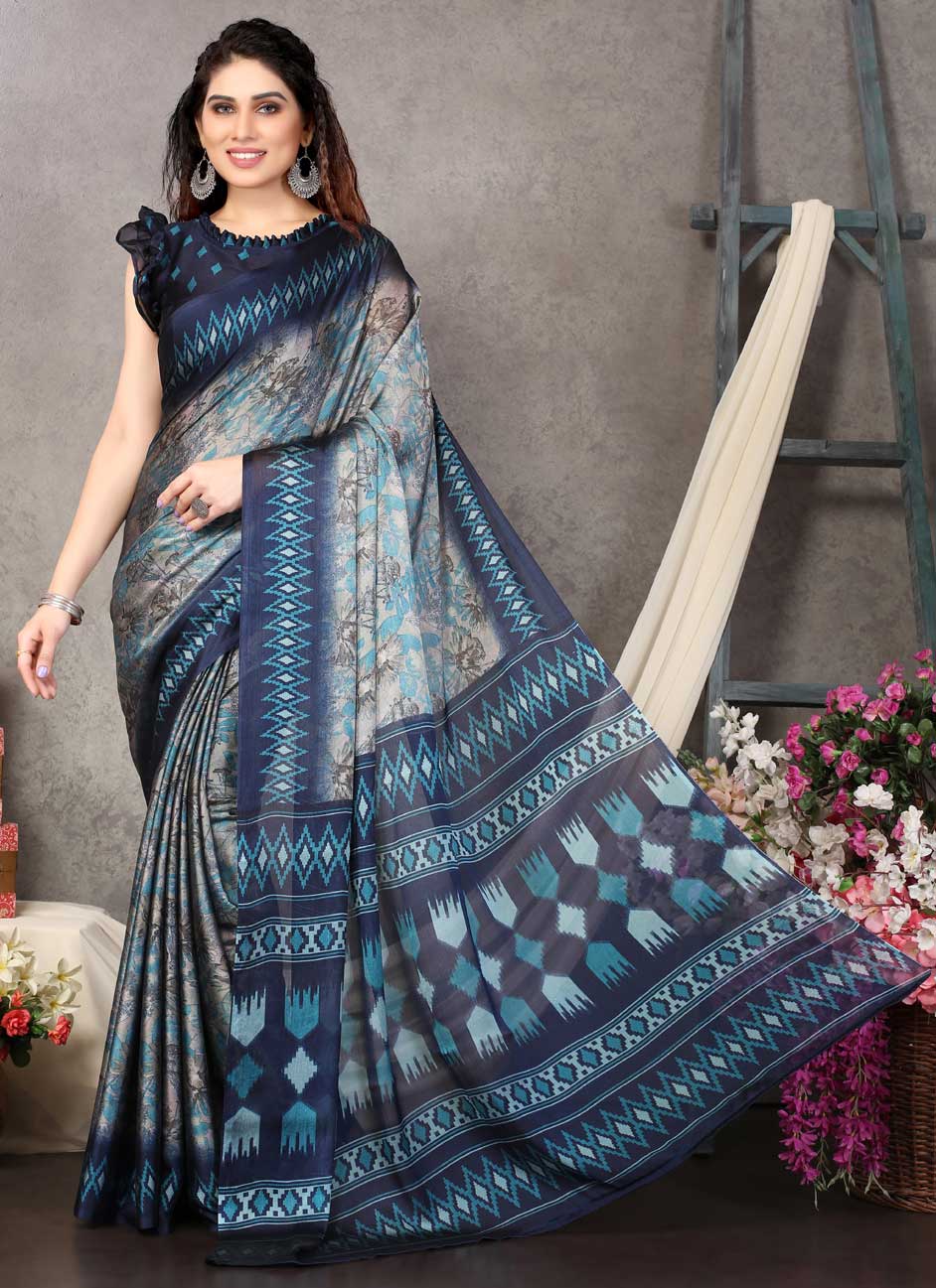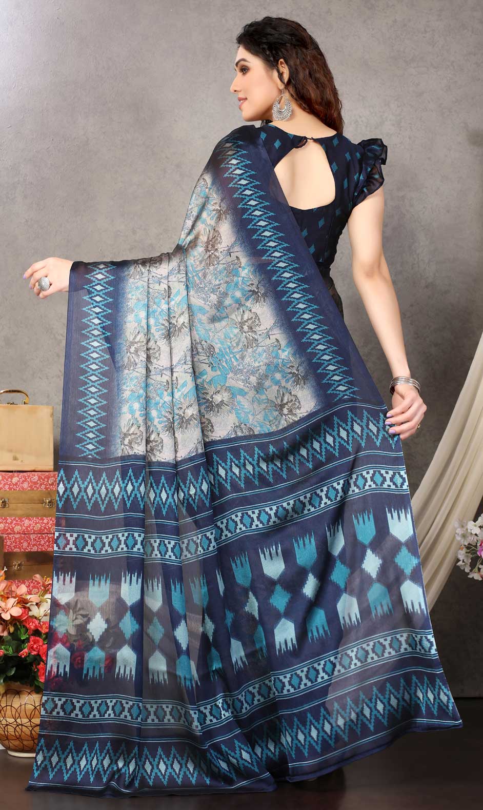 Black and Grey color Saree in Chiffon fabric with Floral, Printed work