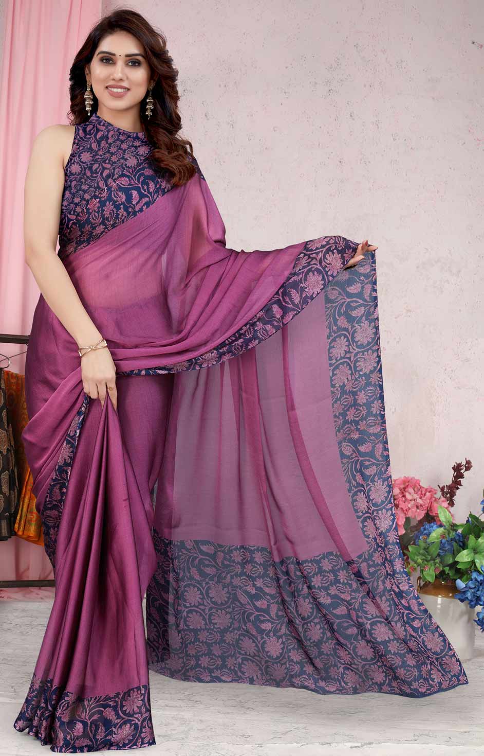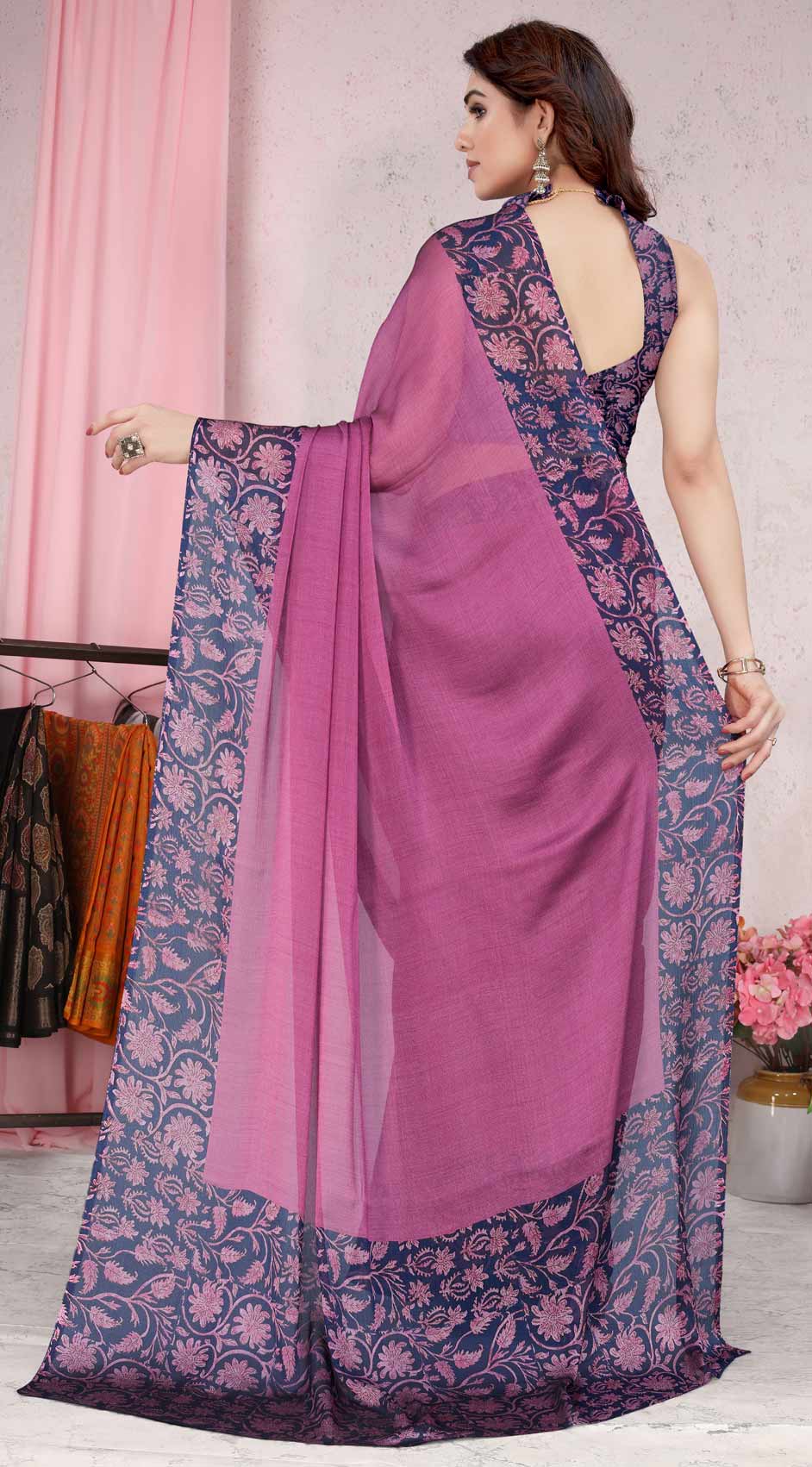 Pink and Majenta color Saree in Chiffon fabric with Printed work