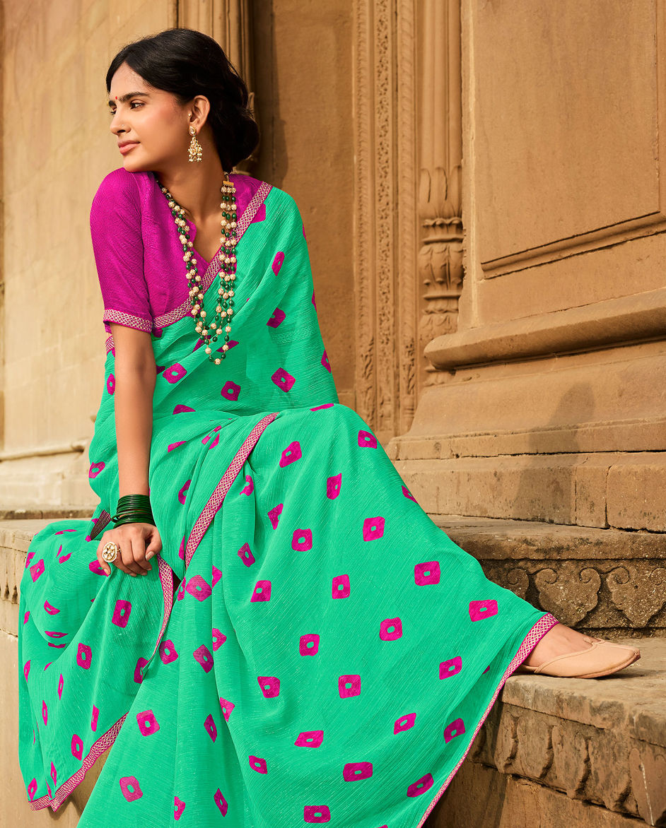 Green color Saree in Chiffon fabric with Border work