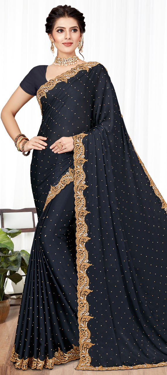 Blue color Saree in Chiffon fabric with Stone work