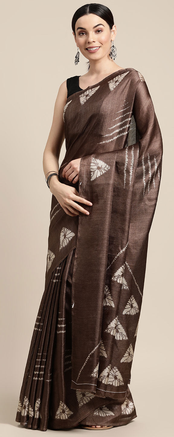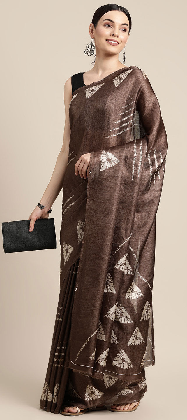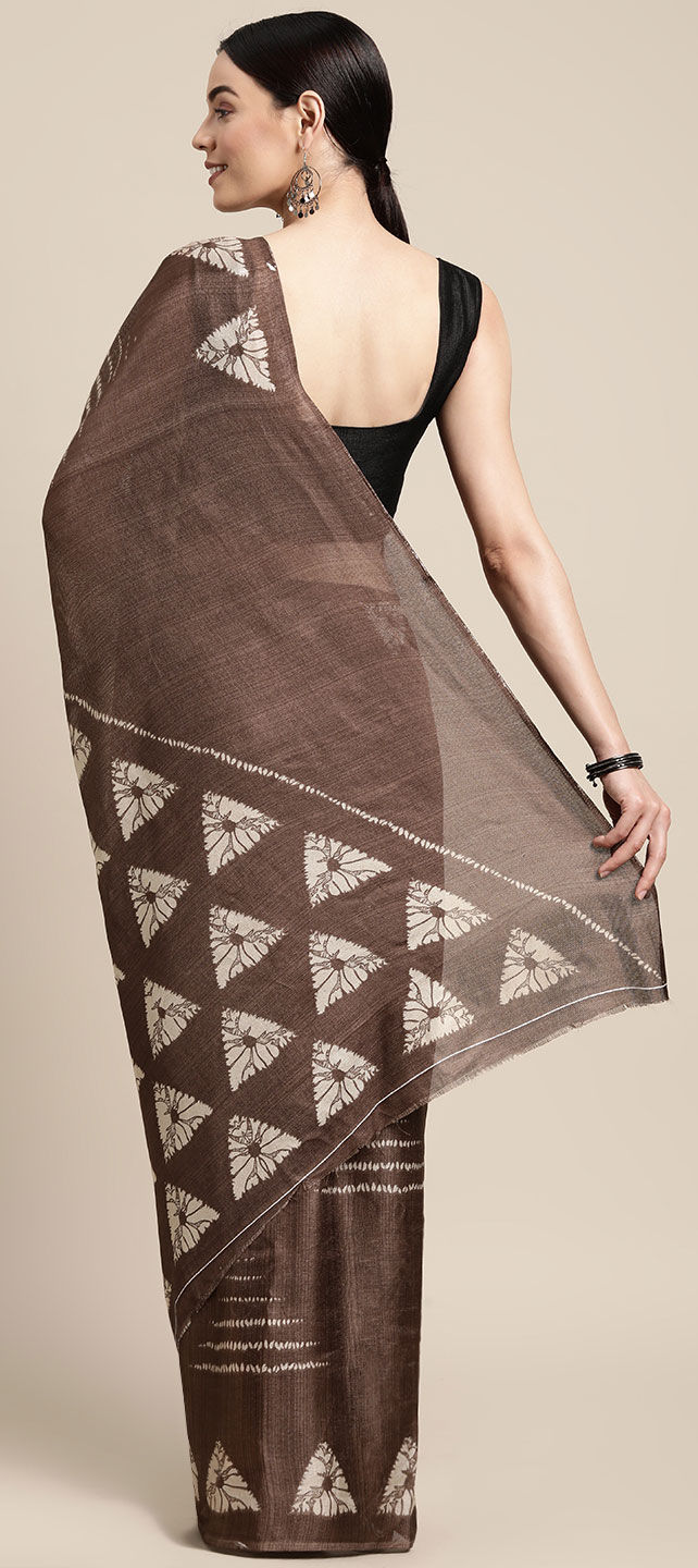 Beige and Brown color Saree in Cotton fabric with Printed work