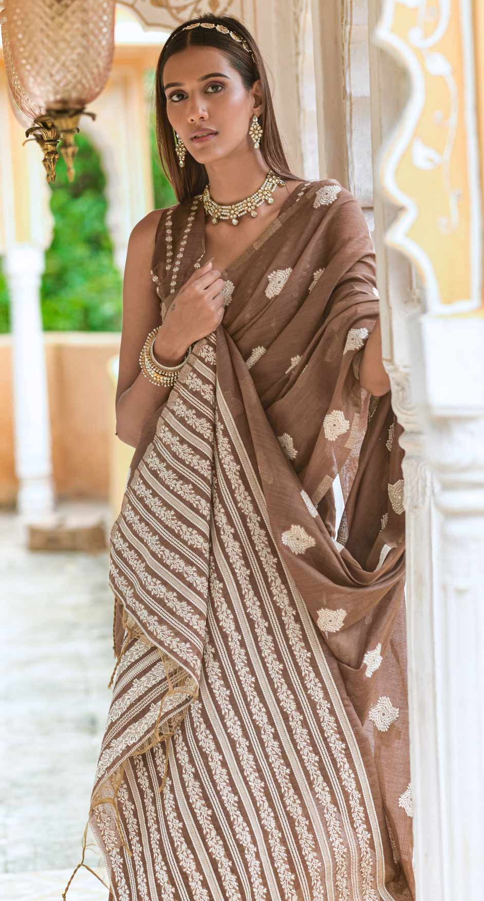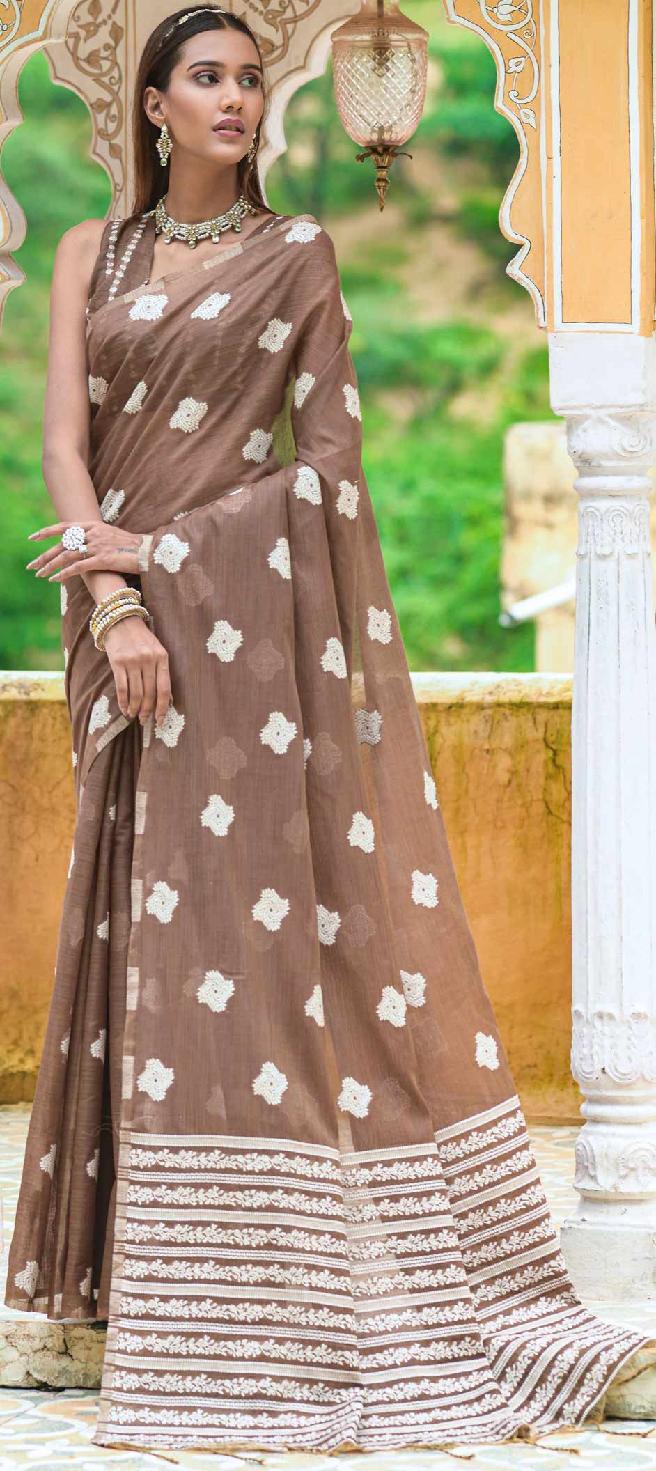 Beige and Brown color Saree in Cotton fabric with Weaving work