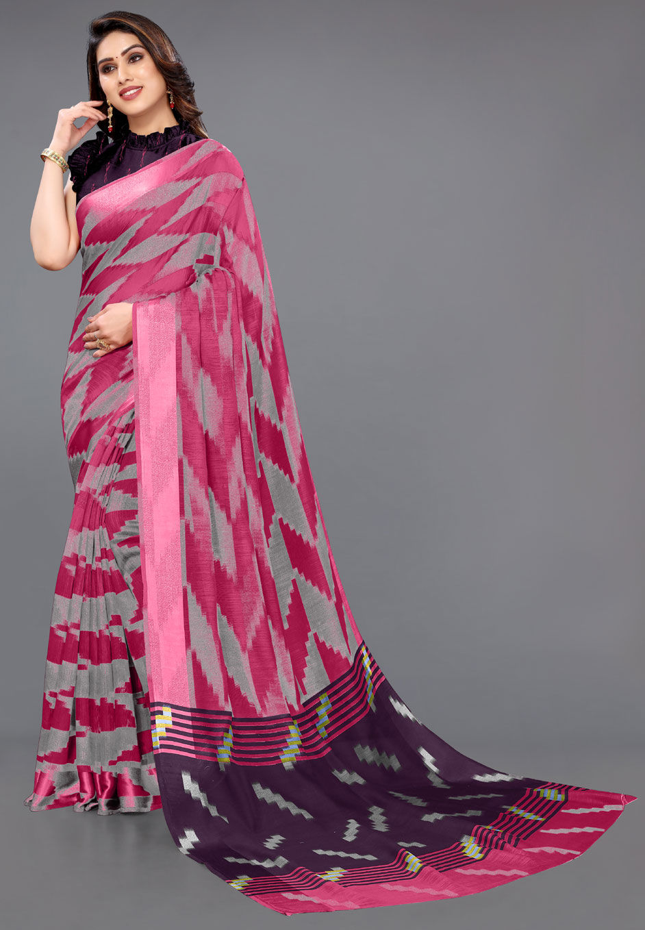 Pink and Majenta color Saree in Cotton fabric with Block Print work