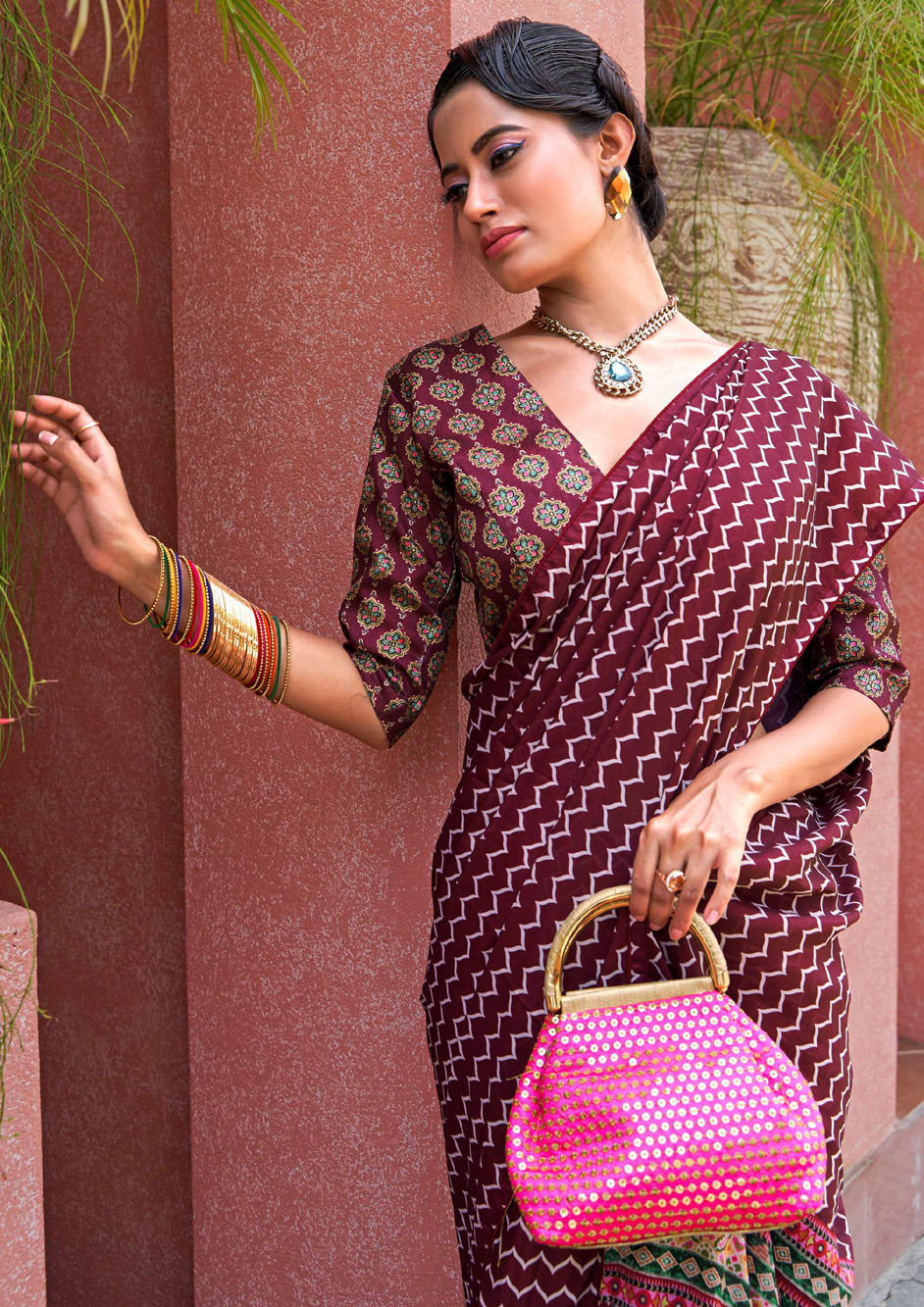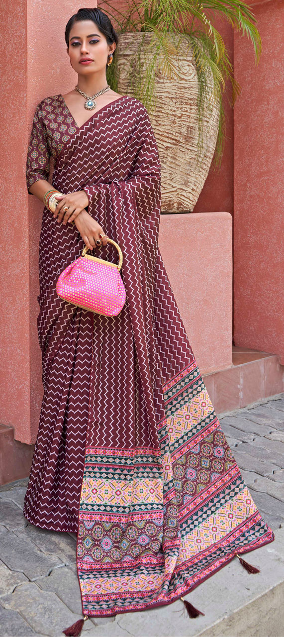 Red and Maroon color Saree in Crepe Silk, Silk fabric with Printed work