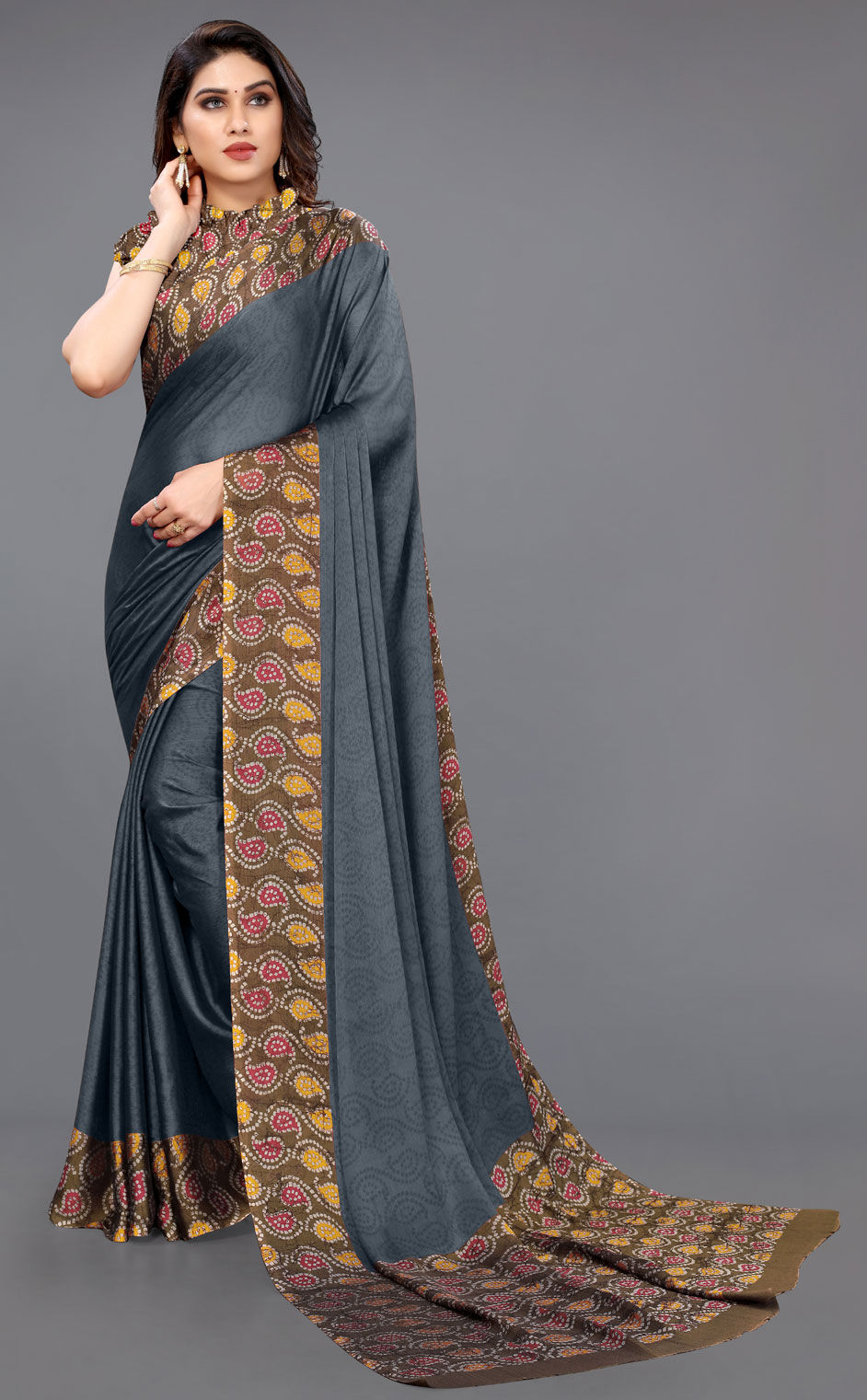 Black and Grey color Saree in Faux Chiffon fabric with Bandhej, Printed work