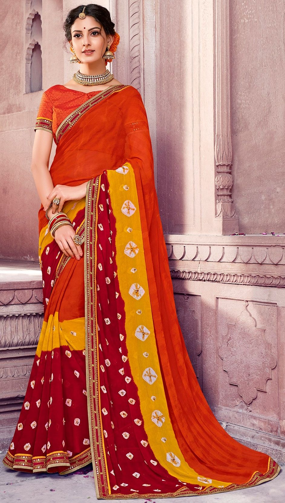Multicolor color Saree in Faux Chiffon fabric with Bandhej, Printed work