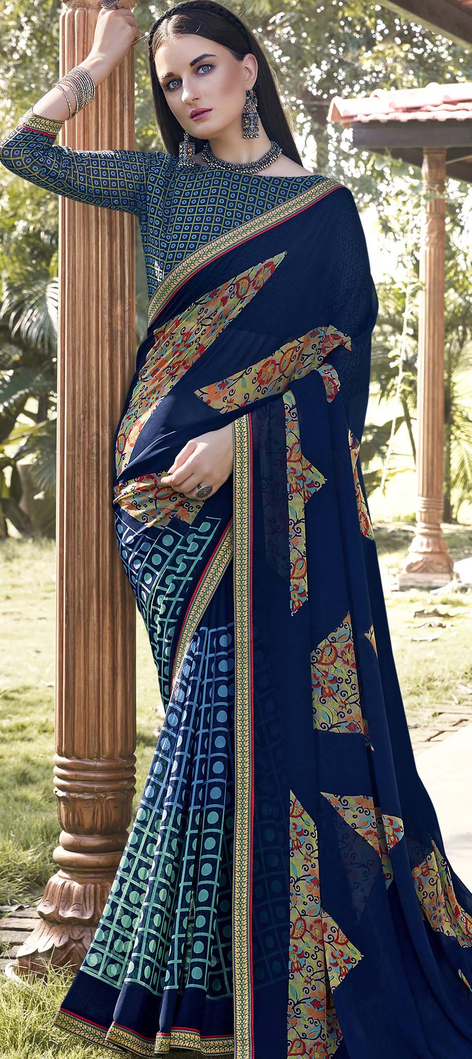 in Blue with Printed work