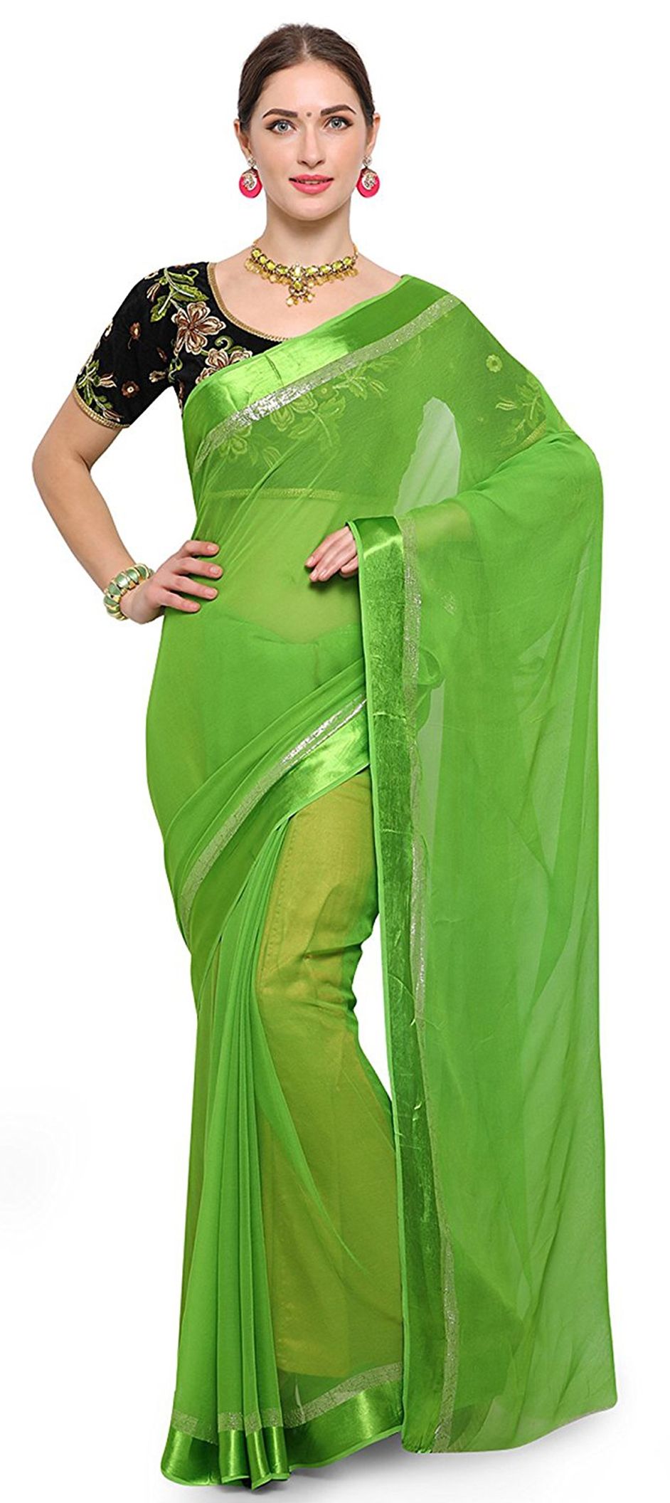Green color Saree in Faux Georgette fabric with Thread work