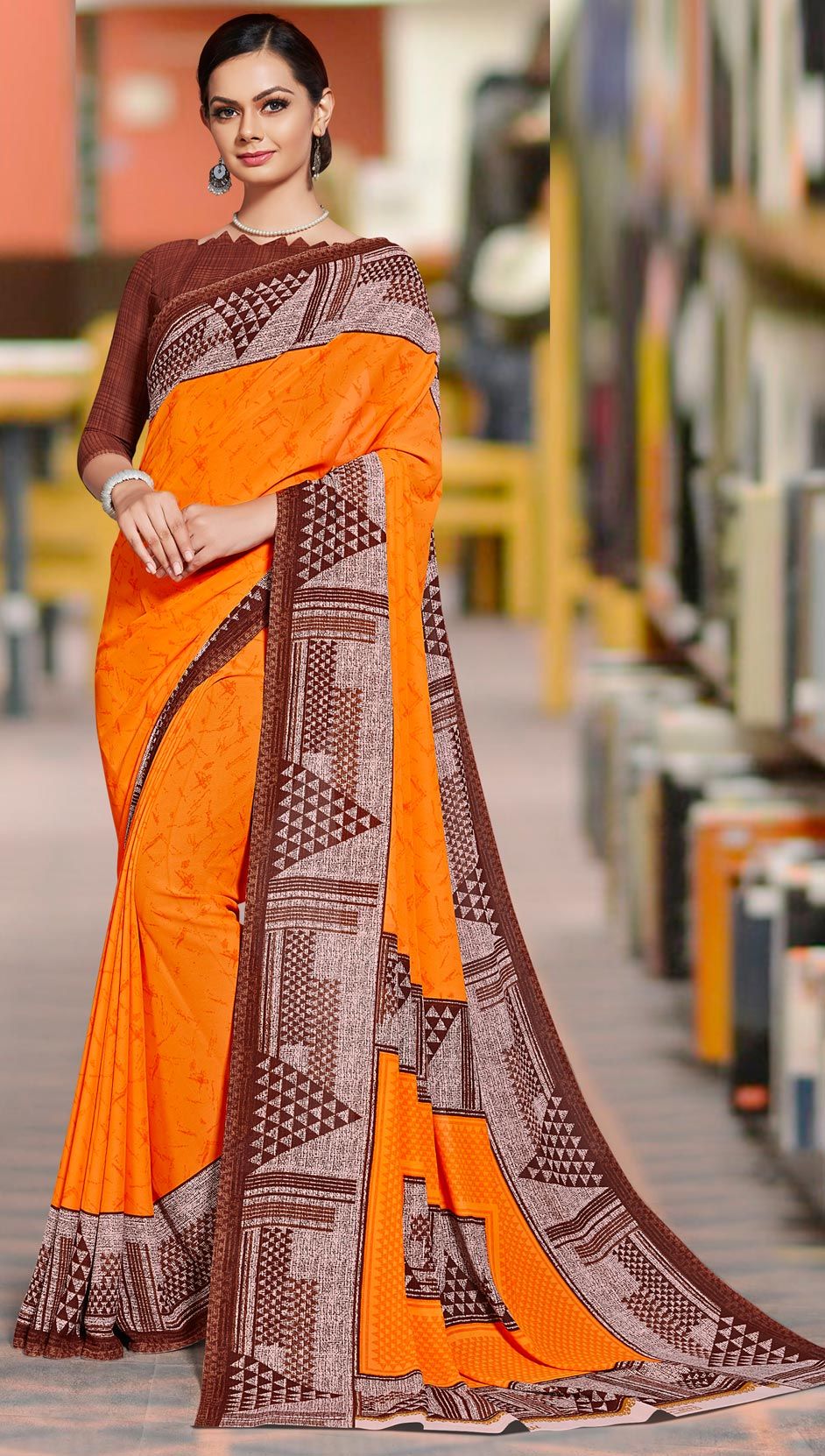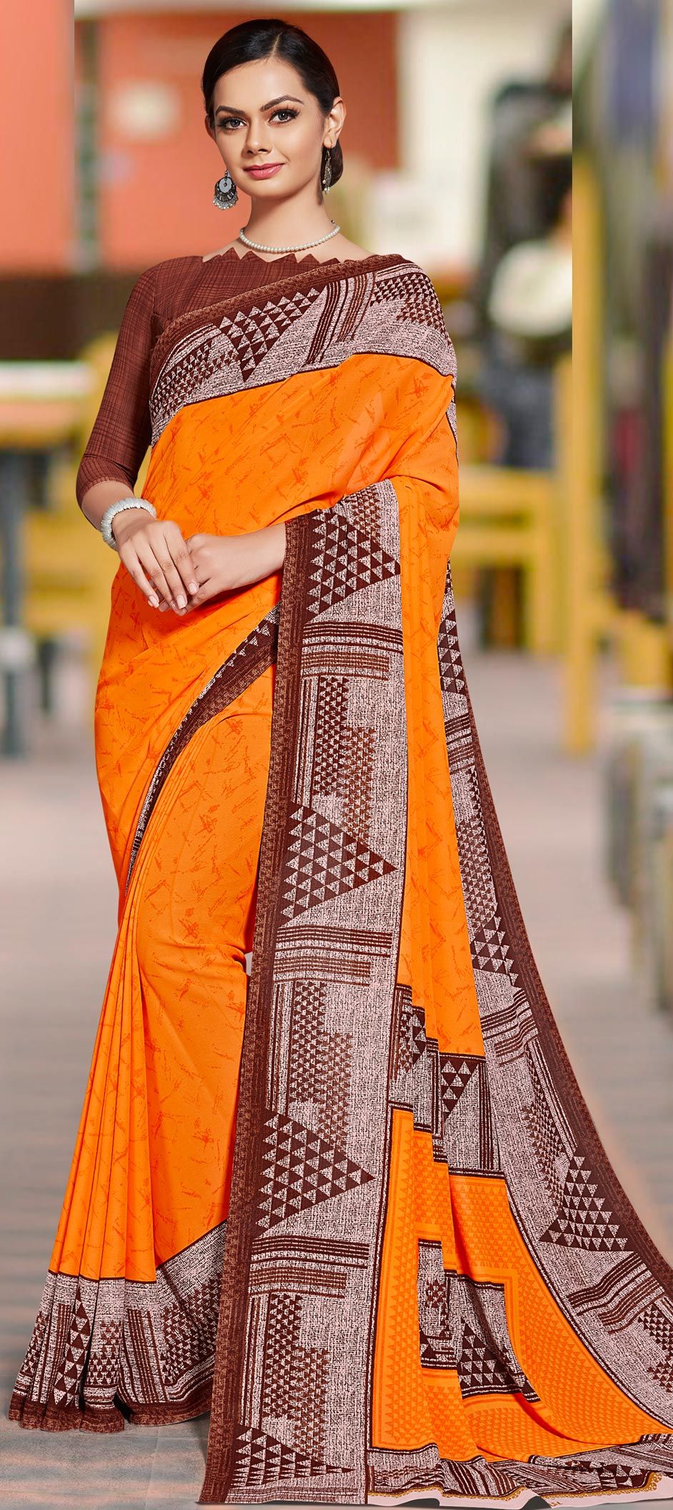 in Orange with Printed work