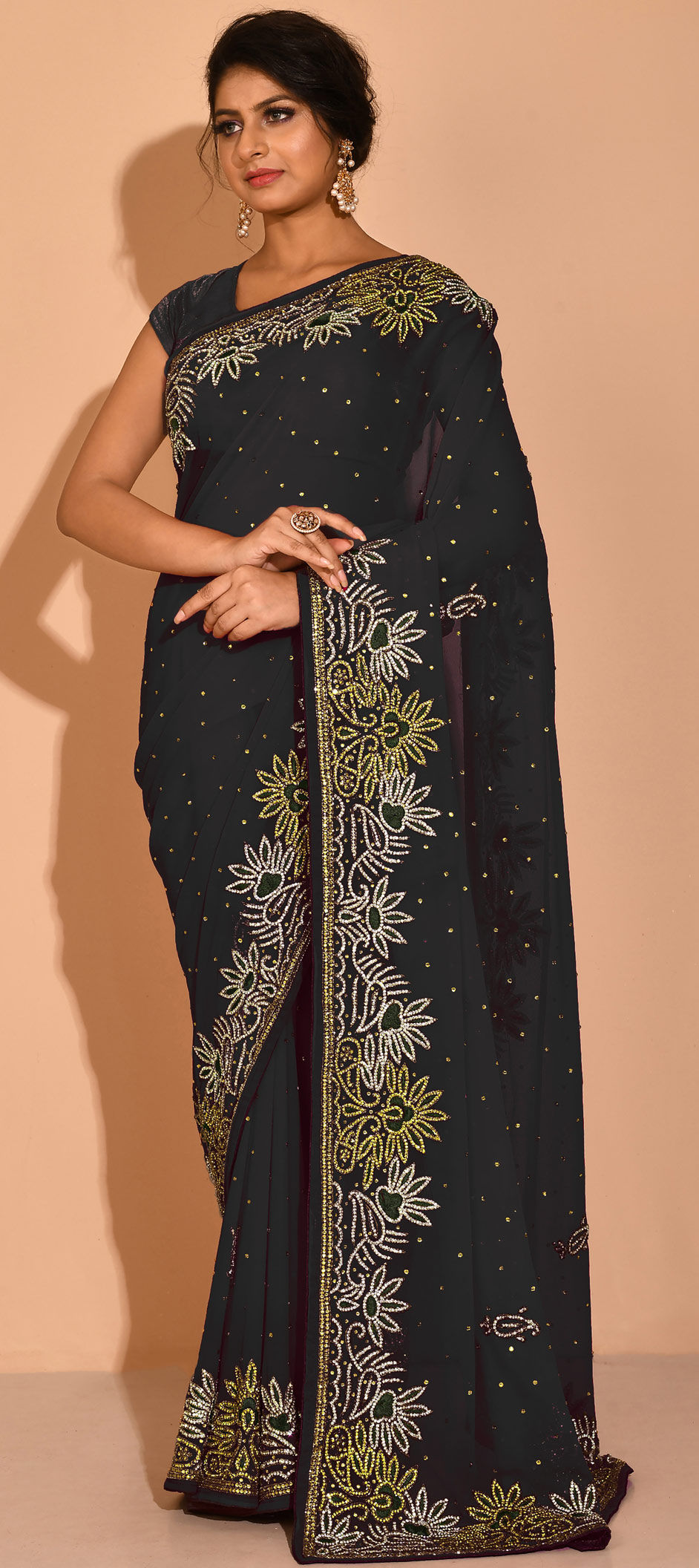 Georgette Wedding Saree in Pink and Majenta with Stone work