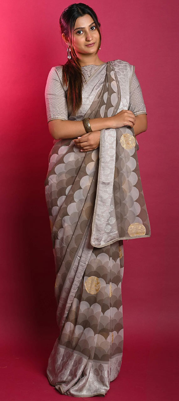 Beige and Brown color Saree in Georgette fabric with Printed work