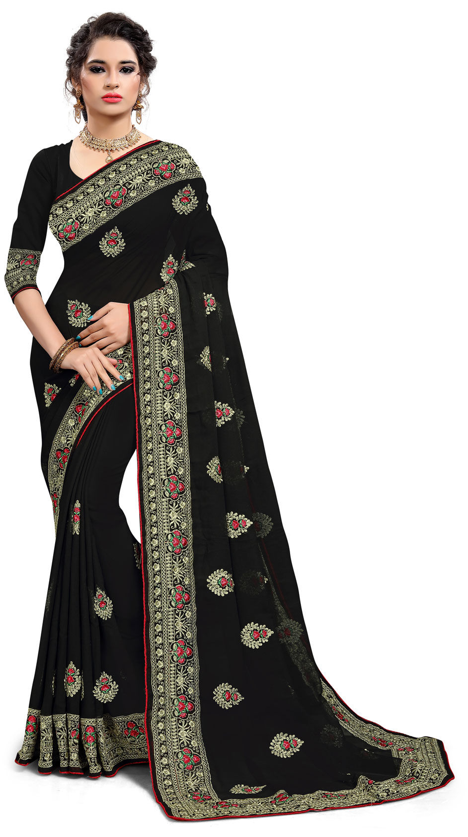 Black and Grey color Saree in Georgette fabric with Embroidered, Resham, Zari work