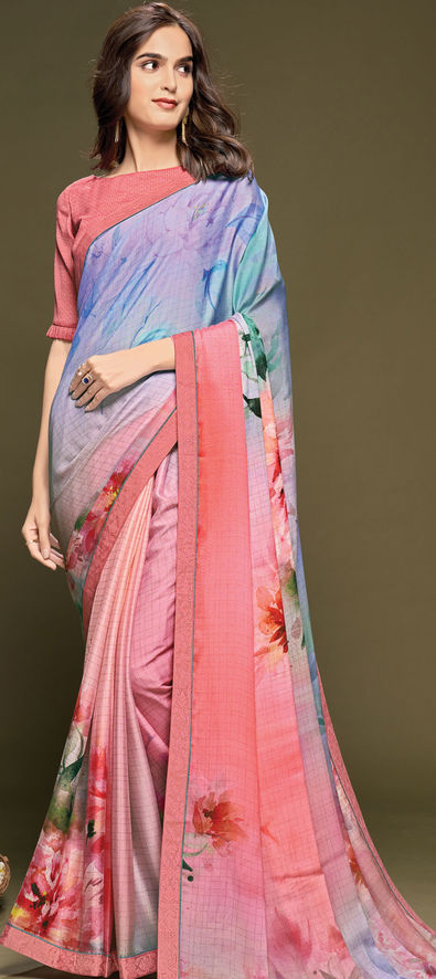 Multicolor color Saree in Georgette fabric with Digital Print, Floral work