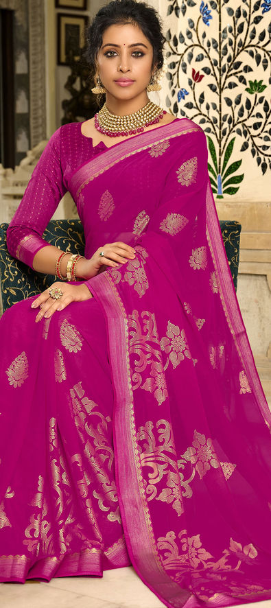 Pink and Majenta color Saree in Georgette fabric with Foil Print work