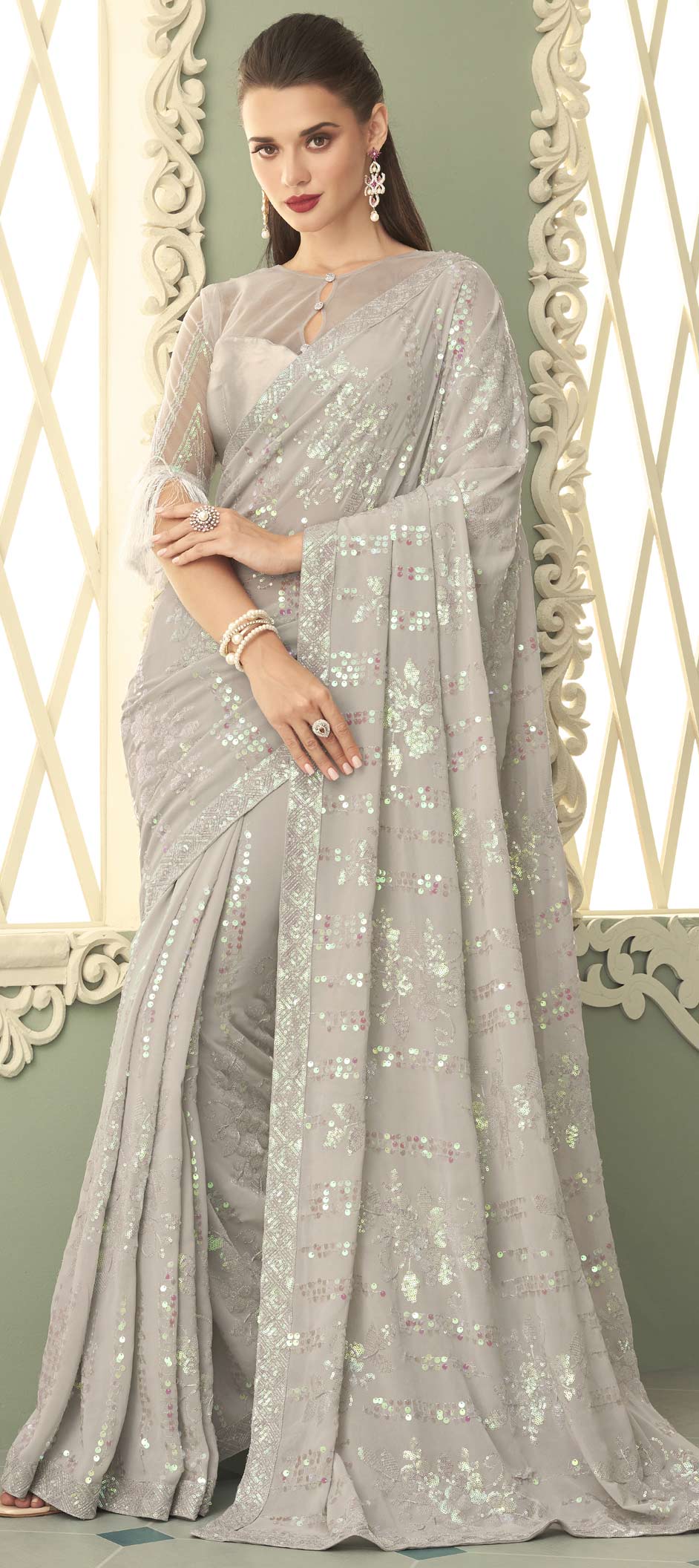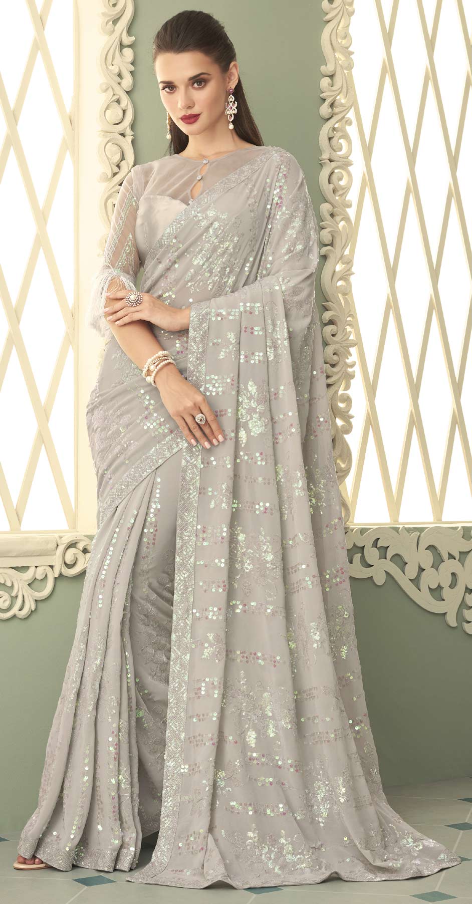Georgette Mehendi Sangeet Saree