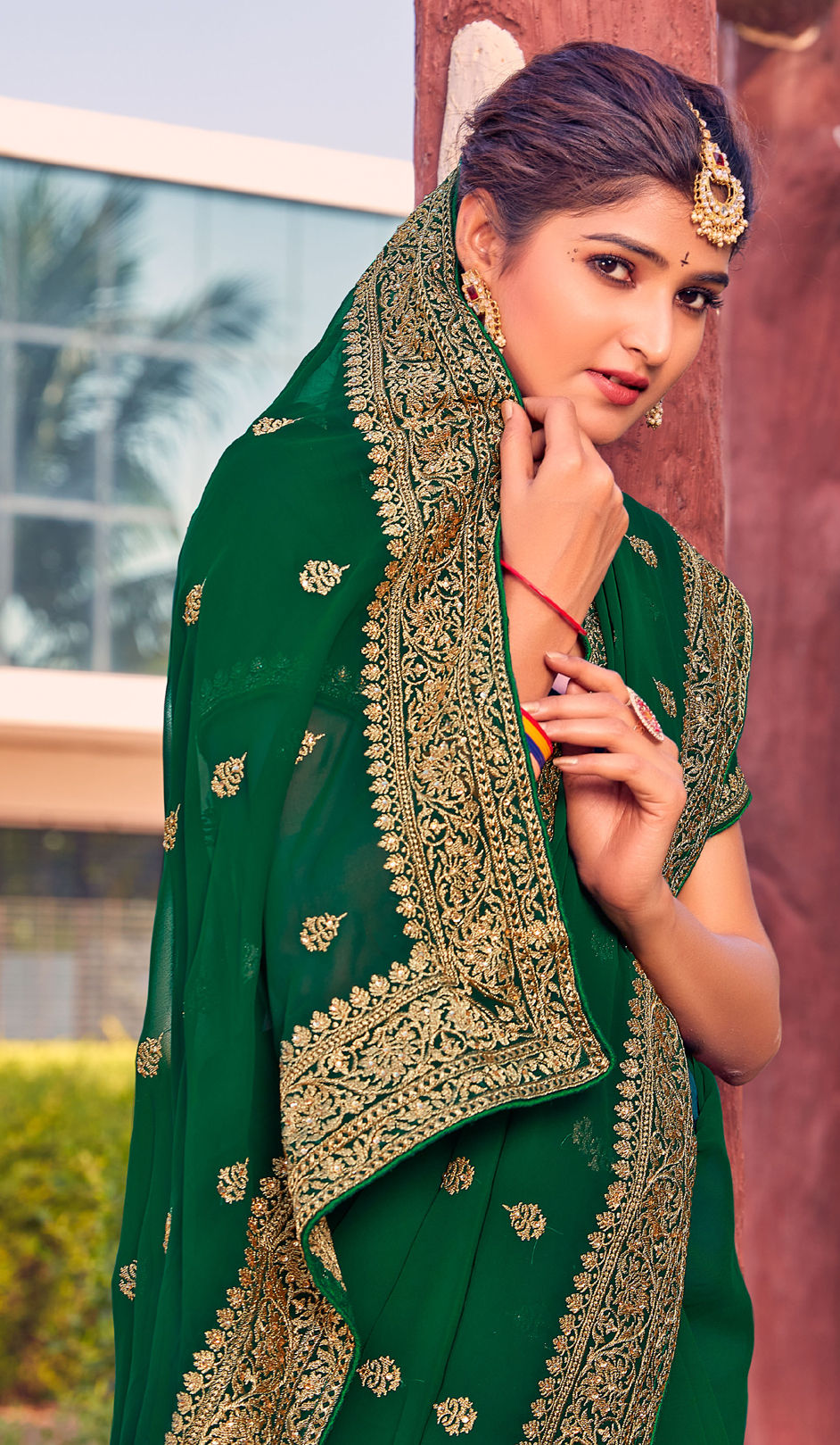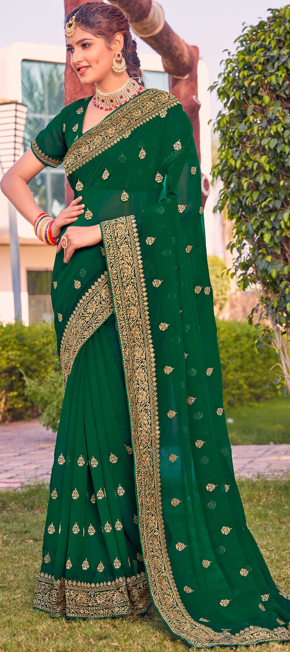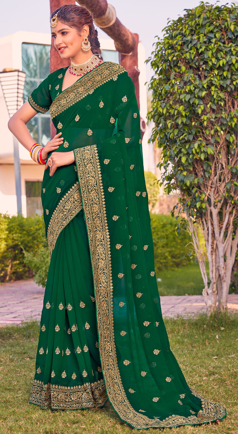 in Green with Embroidered work