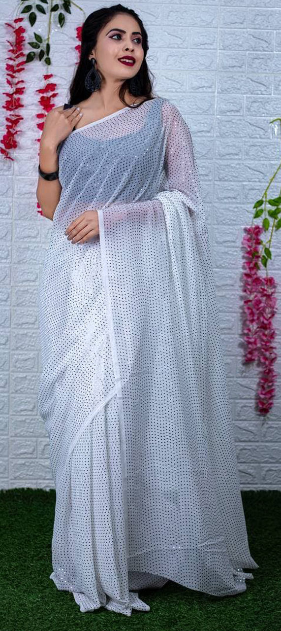 Black and Grey color Saree in Georgette fabric with Fancy Work work