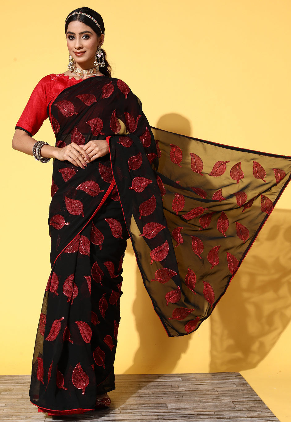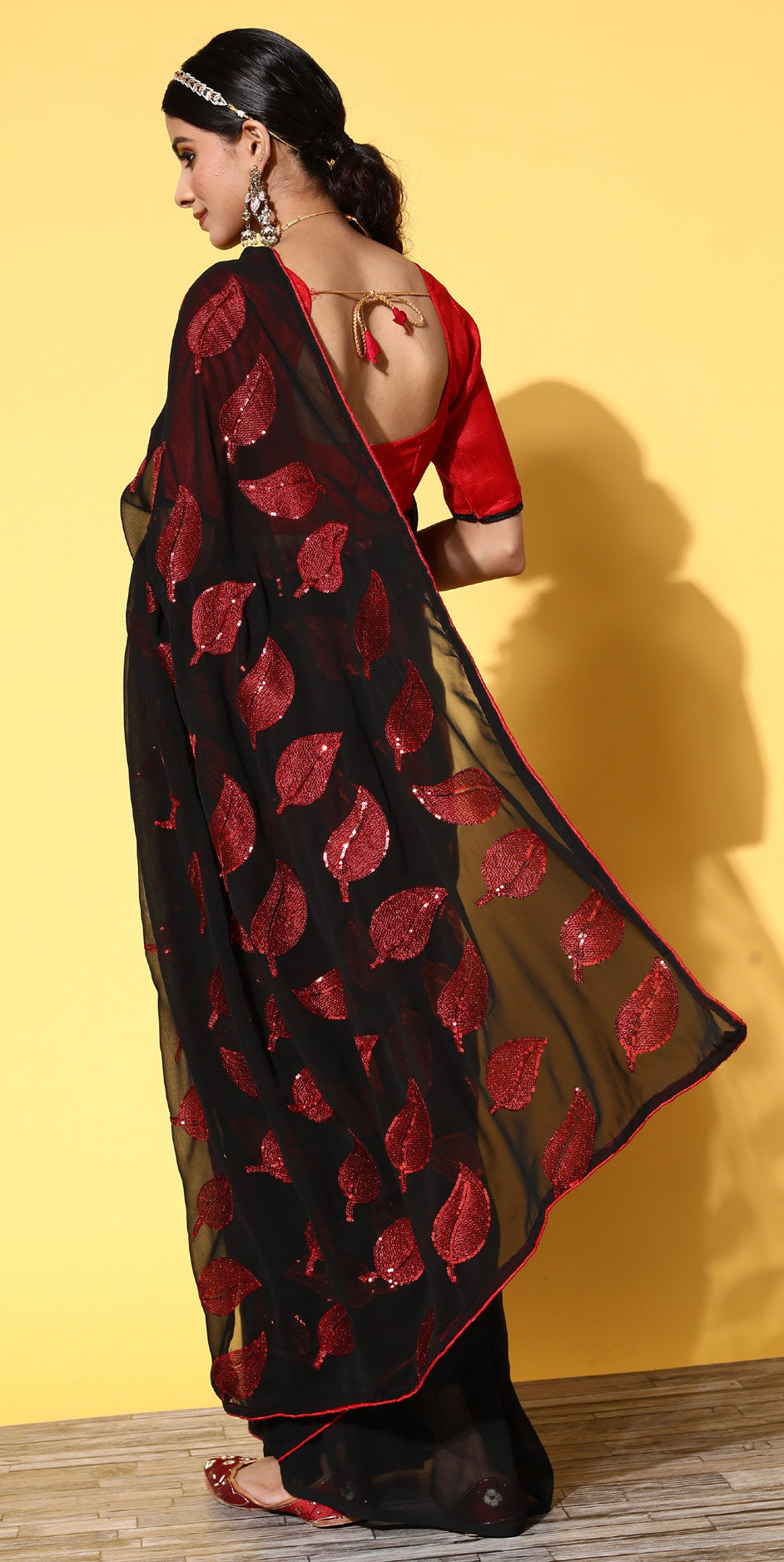 Black and Grey color Saree in Georgette fabric with Embroidered, Sequence, Thread work