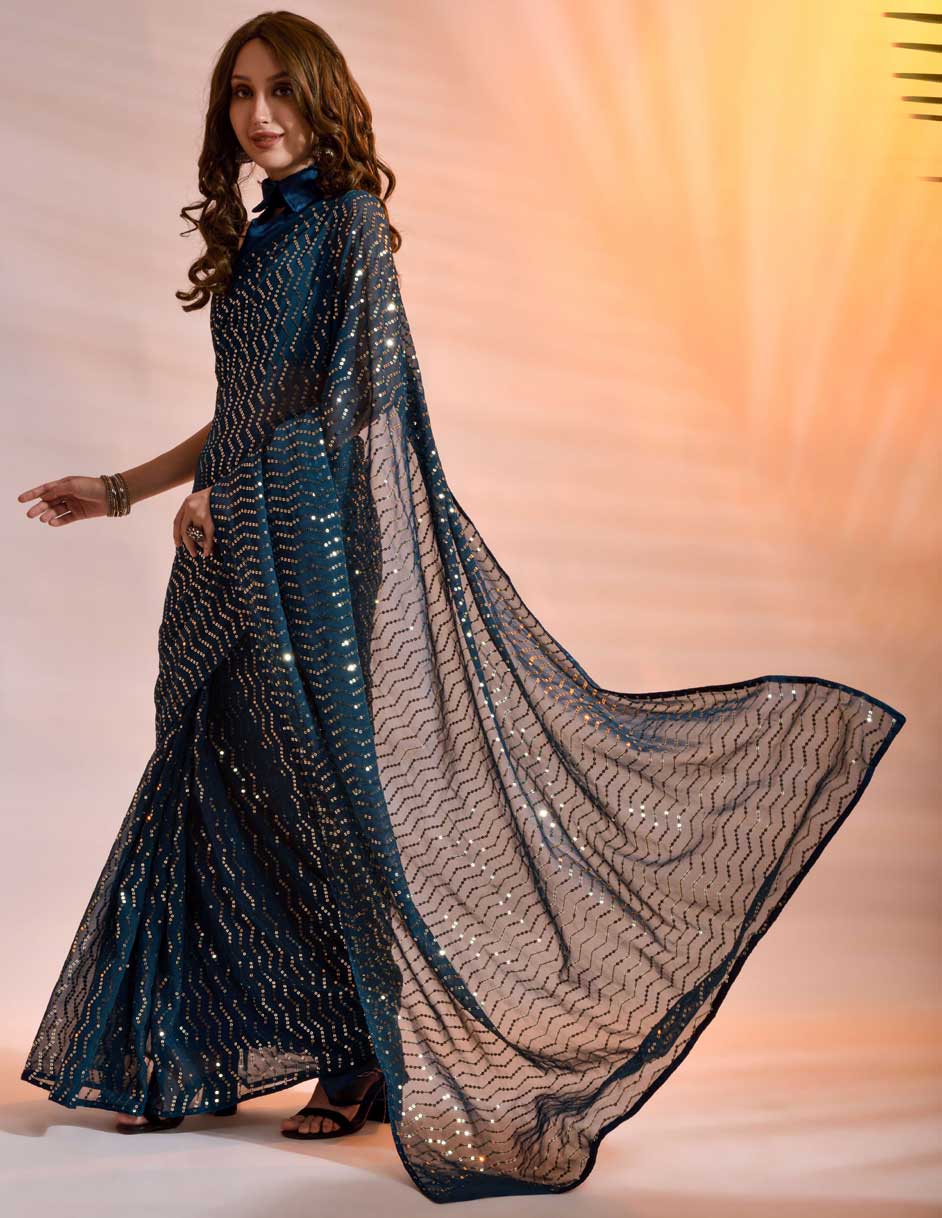 Blue color Saree in Georgette fabric with Sequence, Thread work