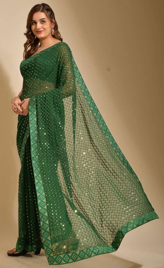 Green color Saree in Georgette fabric with Sequence work